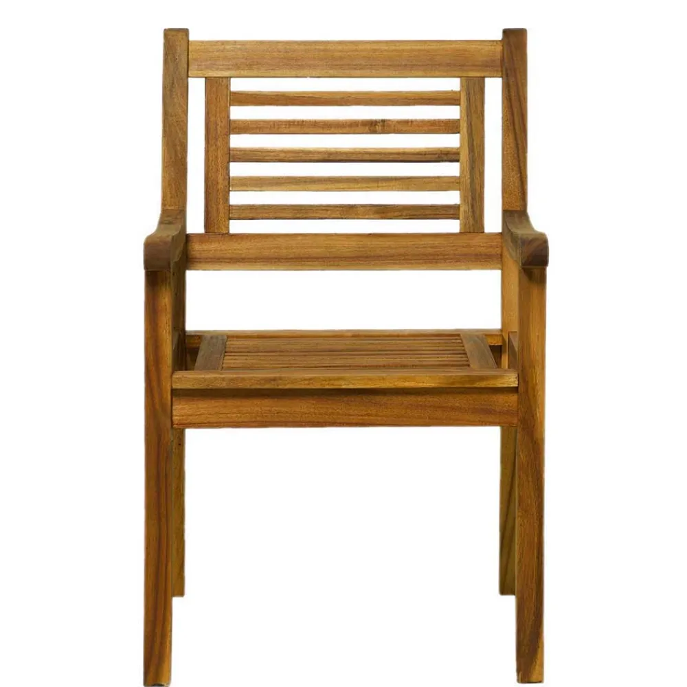 Gefertigt aus massivem Akazienholz, ist die Essgruppe „Jawa“ nicht nur ein optisches Highlight, sondern auch besonders langlebig. Akazienholz ist bekannt für seine Robustheit und natürliche Widerstandsfähigkeit gegenüber Witterungseinflüssen. Die Oberflächen wurden mit einem natürlichen Öl veredelt, um das Holz zu schützen und gleichzeitig die einzigartige Maserung hervorzuheben. Zusätzlich sorgen die Holzstreben mit Zwischenräumen dafür, dass keine Staunässe entsteht – ideal für den Außenbereich. Diese Essgruppe ist nicht nur ein Möbelstück, sondern eine Investition in Qualität und Stil.