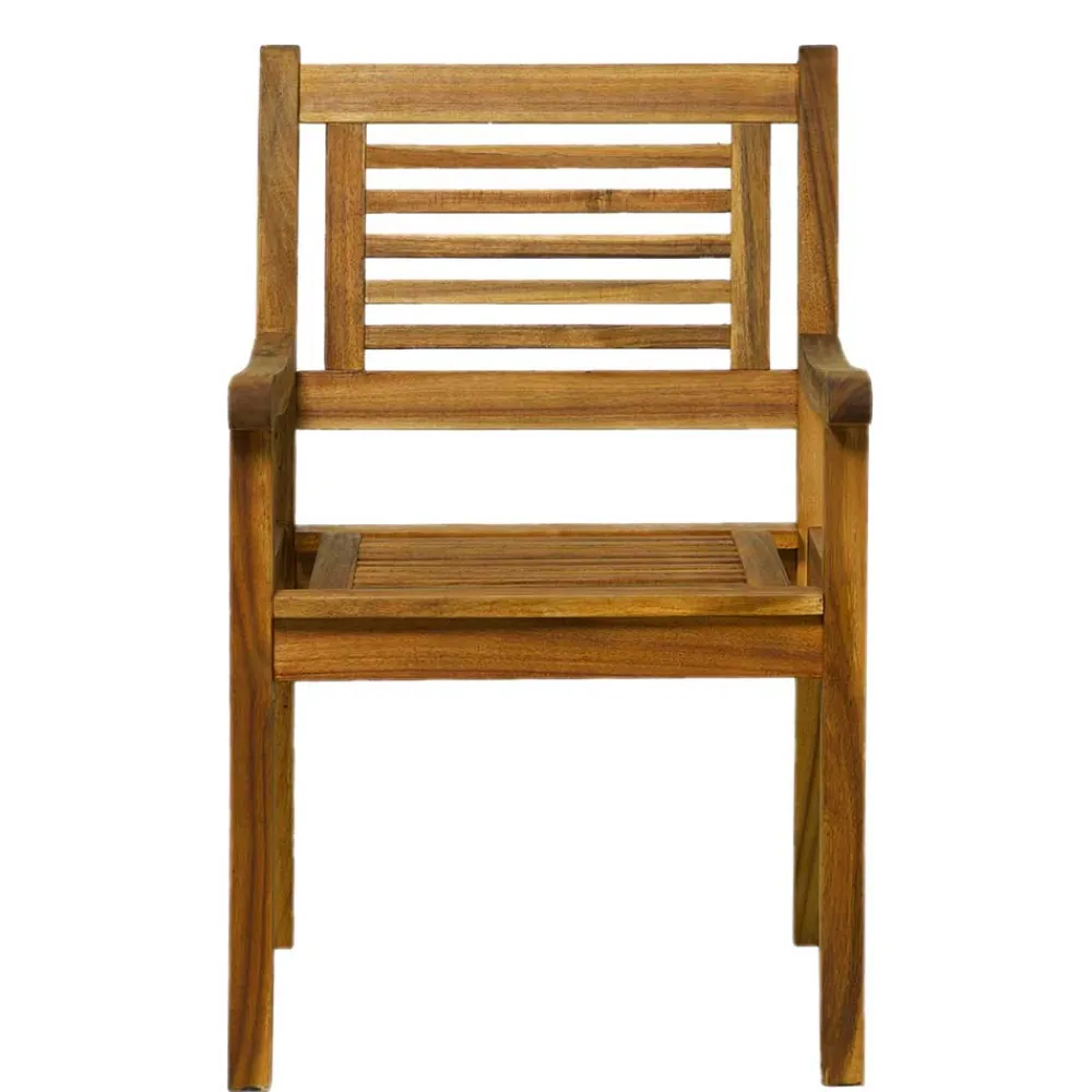 Gefertigt aus hochwertigem Akazien-Massivholz, bietet diese Sitzgruppe eine herausragende Stabilität und Widerstandsfähigkeit gegen Witterungseinflüsse. Die Oberflächen sind bereits vorgeölt, was das Holz zusätzlich vor Feuchtigkeit schützt und die natürliche Farbintensität länger bewahrt. Dank der stabilen Vierfußgestelle mit zusätzlichen Verstärkungen können Sie sich auf eine exzellente Tragkraft und hohe Belastbarkeit verlassen.