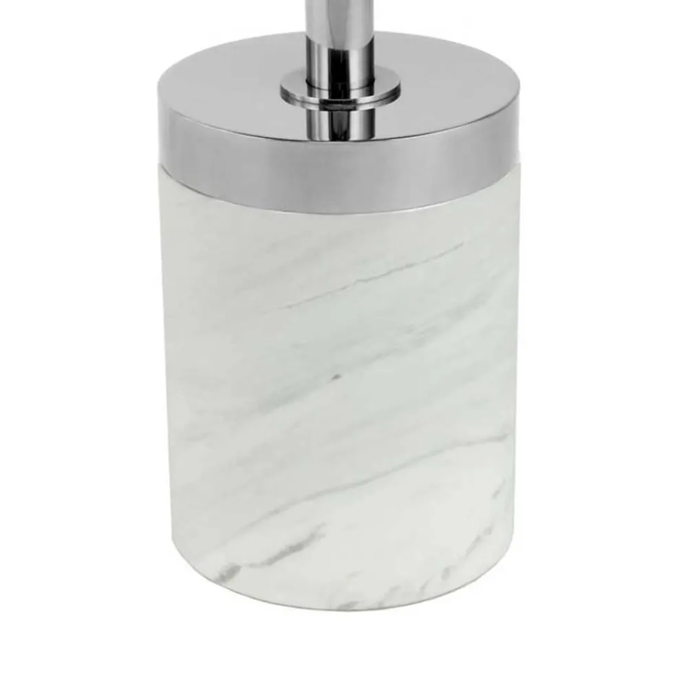 - Fußgestell aus einem Marmorsockel in Weiß und einer Säule aus Edelstahl