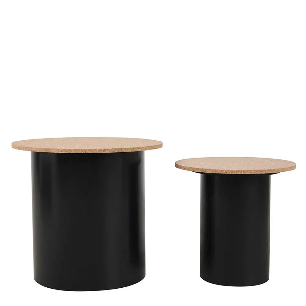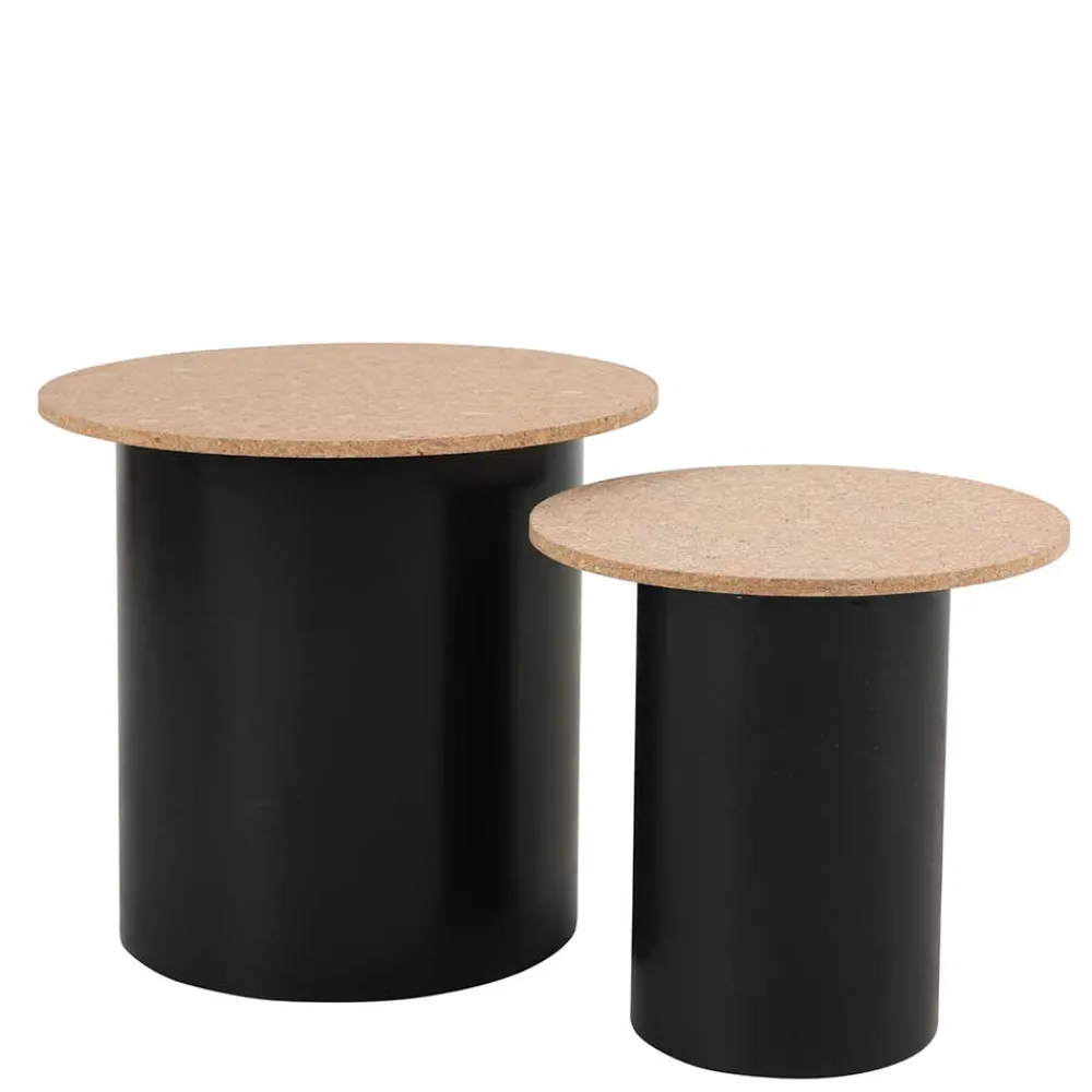 - Klasse Sofatisch Set in Schwarz und Kork Naturfarben