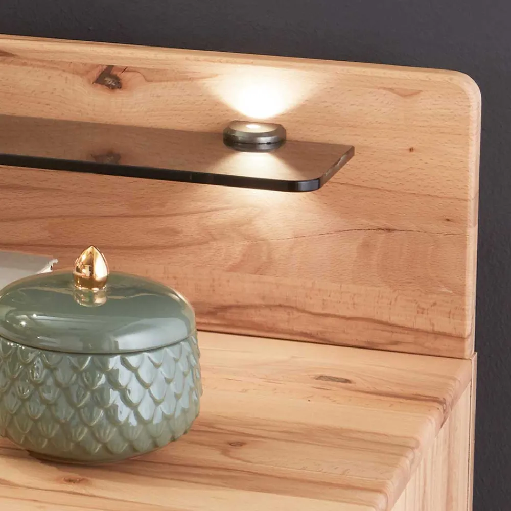 Astkernbuche zeichnet sich durch eine markante Maserung aus, die jedem Bett einen individuellen Charakter verleiht. Massivholz-Elemente wie das Fußteil, die Oberplatte und das Paneel sind lackiert, was für eine langlebige, pflegeleichte Oberfläche sorgt. Die folierten Spanplatten im Holzdesign ergänzen das Gesamtbild perfekt und bieten Stabilität bei gleichzeitig geringem Gewicht.