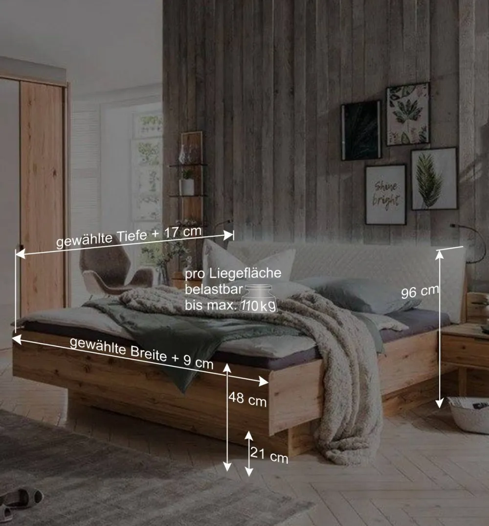Mit einer bequemen Einstiegshöhe von 48 cm erleichtert dieses Bett den Einstieg und Aufstehen – ideal für alle, die Wert auf Komfort und ergonomische Vorteile legen. Zudem sorgt der Bodenabstand von 21 cm zum Seitenteil für eine leichte Reinigung unter dem Bett und eine gute Luftzirkulation, was zusätzlich zu einem gesunden Schlafklima beiträgt.