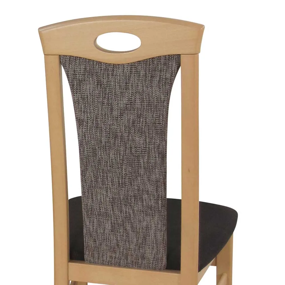 Die zweifarbige Polsterung mit braun melierter Rückenlehne und dunkelbrauner Sitzfläche zieht die Blicke magisch an und sorgt für ein harmonisches, dennoch spannendes Gesamtbild. Die partiell offene Rückenlehne mit elegant geschwungenem Holzrahmen verleiht dem Stuhl Leichtigkeit und Raffinesse – ein echtes Highlight in jeder Einrichtung. Besonders praktisch und zugleich stilvoll: Die integrierte Griffmulde am oberen Rückenbereich erleichtert das Umstellen oder Herausrücken und unterstreicht die hohe Alltagstauglichkeit.