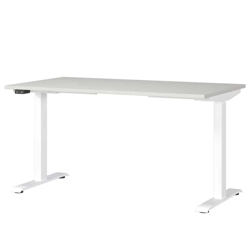- Weiß pulverbeschichtetes Metallgestell in T-Form mit nivellierbaren Kunststoff Bodengleitern