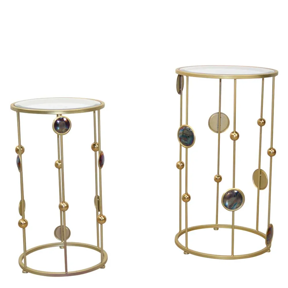 - Standfestes Ringgestell, runde Metallapplikationen, kombiniert mit farbigen Elementen