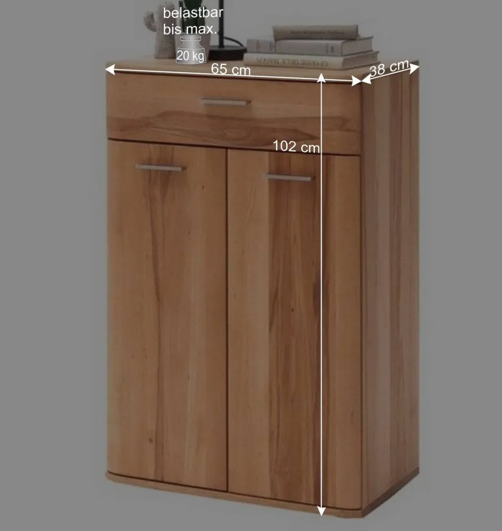 - Korpusmöbel auf flachen Holzfüßen stehend, Maße (BxHxT): je ca. 6×1,5×6 cm, eine zusätzliche Kippsicherung wird mitgeliefert