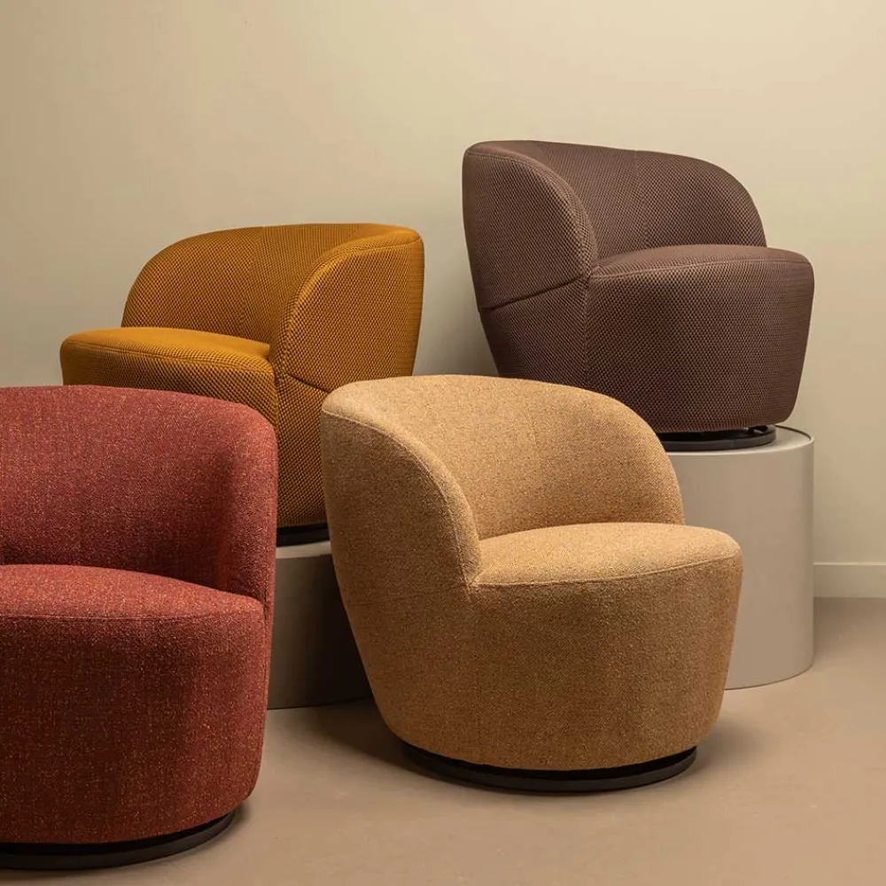 Mit seinem warmen Currygelb und der charmanten Melierung bringt der drehbare Polstersessel „Waltma“ eine wohnliche Atmosphäre in Ihr Zuhause. Die runde Cocktailform und das sanfte Farbspiel verleihen ihm eine besondere Ausstrahlung, die sowohl in modernen als auch in klassischen Interieurs wunderbar zur Geltung kommt. Ob als stilvolles Einzelstück in der Leseecke, als Akzent im Wohnzimmer oder als komfortable Ergänzung in Ihrem Büro – dieser Sessel sorgt überall für ein geschmackvolles Ambiente und höchsten Sitzgenuss.
