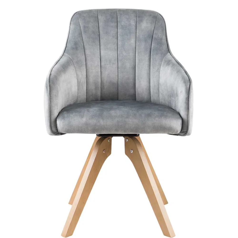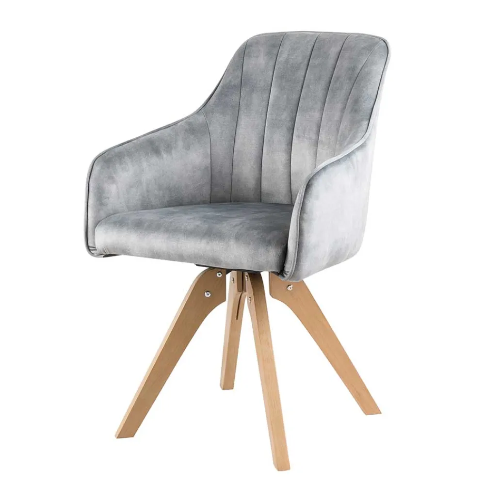 Der Drehstuhl „Puebla“ bietet Ihnen ein außergewöhnlich komfortables Sitzgefühl, dank einer komfortablen Sitzhöhe von ca. 51 cm und den Maßen 58 cm Breite, 86 cm Höhe sowie einer Sitztiefe von 46 cm. Die Schaumstoffpolsterung sorgt für eine weiche, aber stützende Sitzfläche, die sich ideal für lange Abendessen oder ausgedehnte Gespräche eignet. Überzogen mit einem eleganten Veloursbezug in Grau und Vintage-Optik (100% Polyester), kombiniert der Stuhl Langlebigkeit mit pflegeleichten Oberflächen und einem edlen Look.