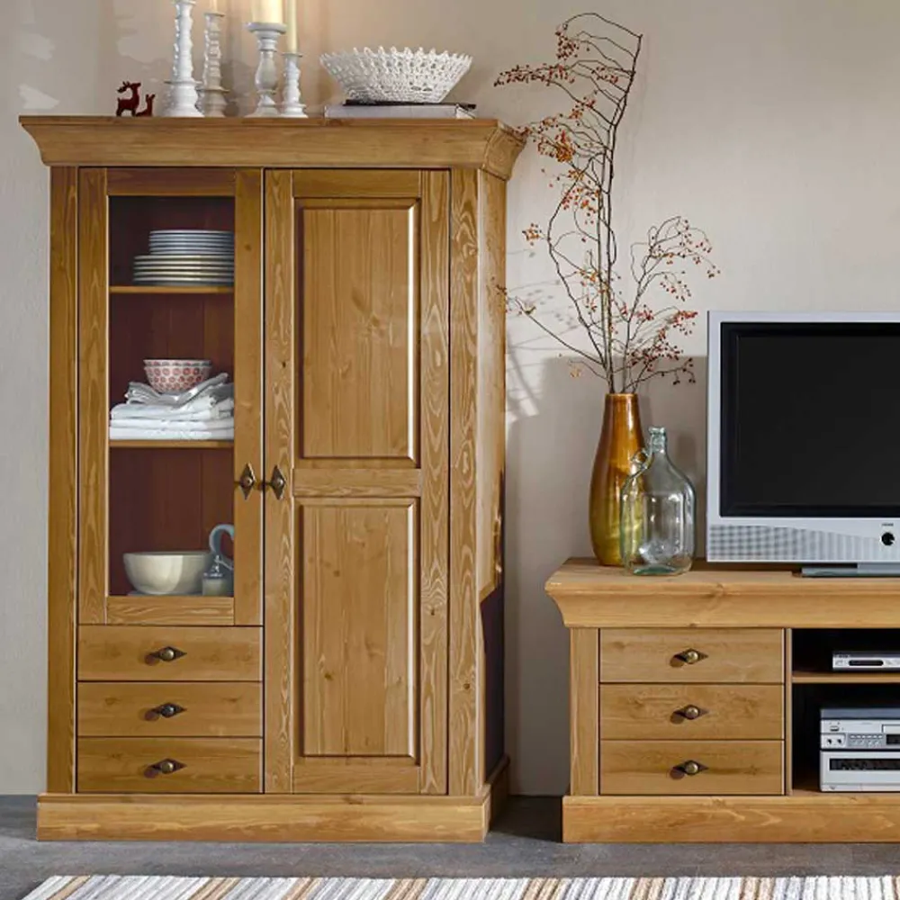 - Attraktiver Vitrinenschrank in Kiefer Laugenfarben