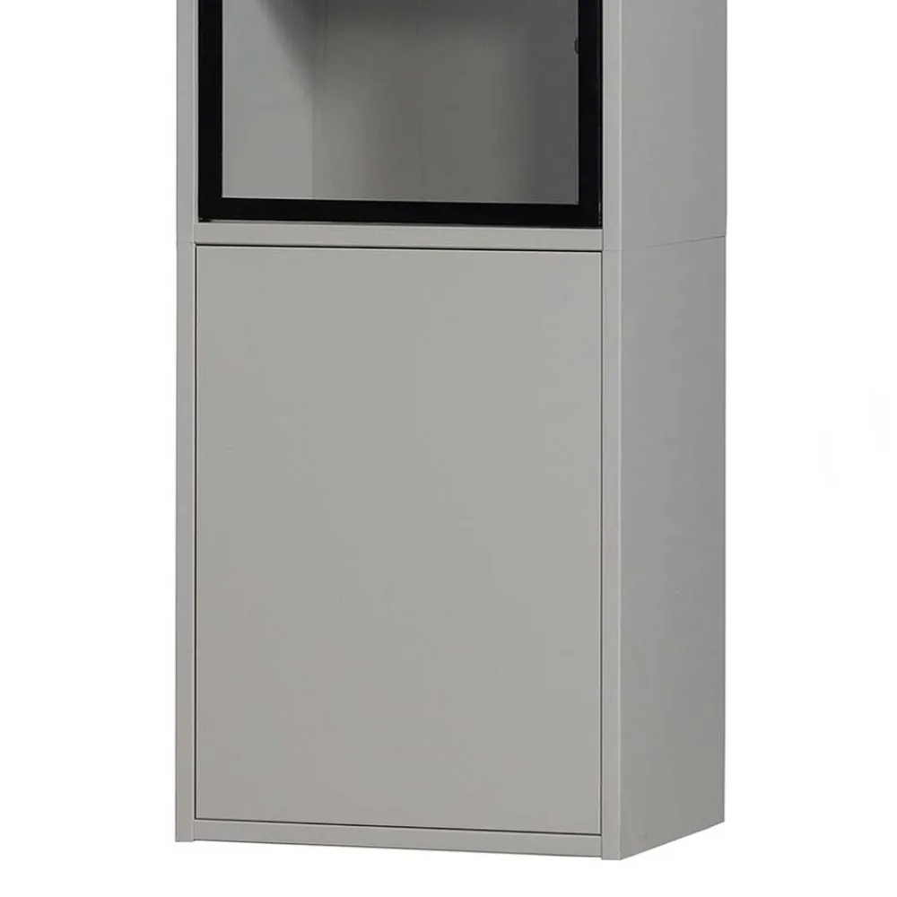 - Zwei Türen, oben ein dekorativ mattschwarzer Metallrahmen an der Glastür