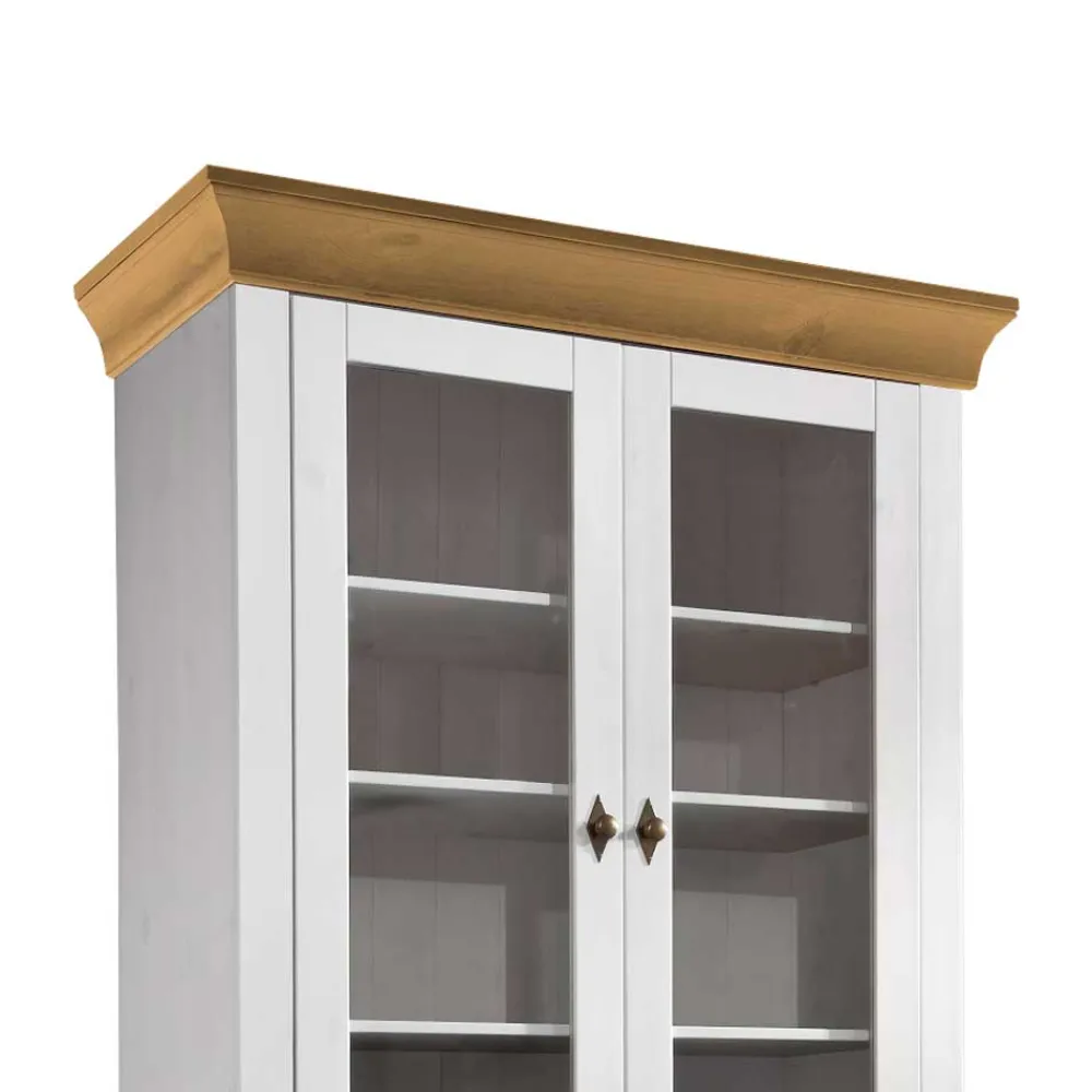- Hochwertige Vitrine in Weiß und Kiefer Laugenfarben