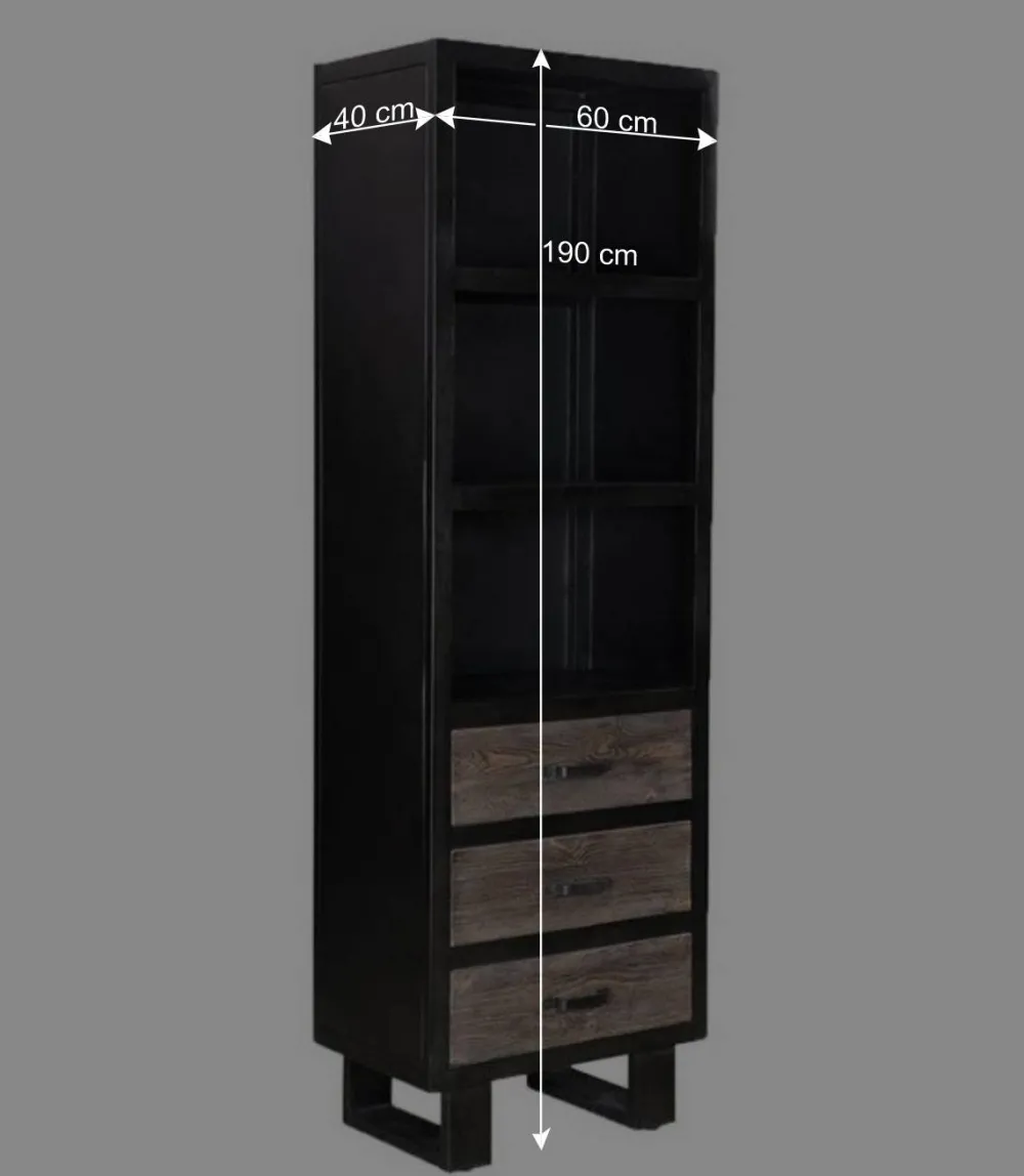 Mit Abmessungen von 60 cm Breite, 190 cm Höhe und 40 cm Tiefe bietet das Regal „Vebugran“ überraschend viel Stauraum, ohne dabei zu wuchtig zu wirken. Die drei oberen Fächer sind ideal, um Ihre Lieblingsdekorationsstücke, Bücher oder Geschirr zur Schau zu stellen, während die drei unteren Schubladen aus massivem Kiefern- und Mangobaumholz nicht nur einen schönen visuellen Akzent setzen, sondern auch praktischen Stauraum bieten. Die handlichen Bügelgriffe aus Metall erleichtern die Bedienung und fügen sich nahtlos in das Gesamtbild ein.