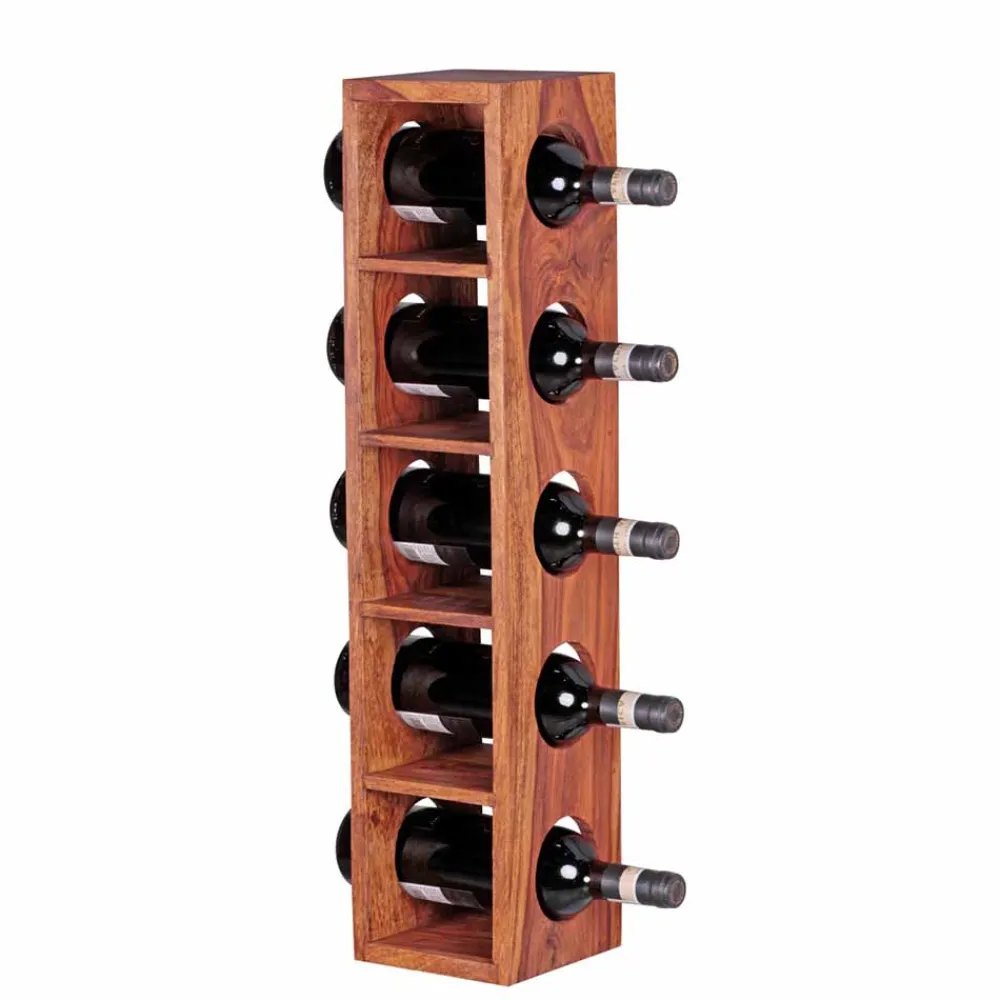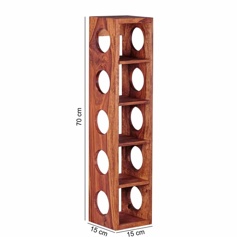 Massives Sheeshamholz – auch bekannt als indisches Palisander – bildet die Basis für dieses Weinregal. Diese edle Hartholzart überzeugt nicht nur durch ihre hohe Dichte und Stabilität, sondern auch durch ihre individuelle Optik. Jedes Stück zeigt eine einzigartige Maserung, die durch das harte, widerstandsfähige Material noch besser zur Geltung kommt. Hohe Beständigkeit gegen Abnutzung, Formstabilität und eine natürliche Resistenz gegen Schädlinge machen Sheesham zu einer hervorragenden Wahl für langlebige Möbel mit Charakter.