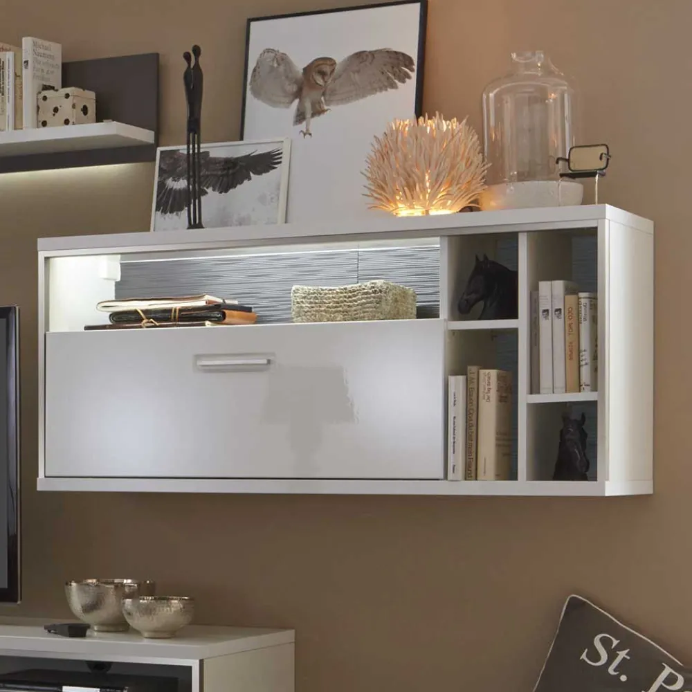 Möchten Sie Ihrem Wandschrank „Tacroma“ eine zusätzliche Note verleihen? Kein Problem! Sie können optional eine LED-Beleuchtung für das obere Fach bestellen, um Ihre Dekorationsgegenstände ins rechte Licht zu rücken.