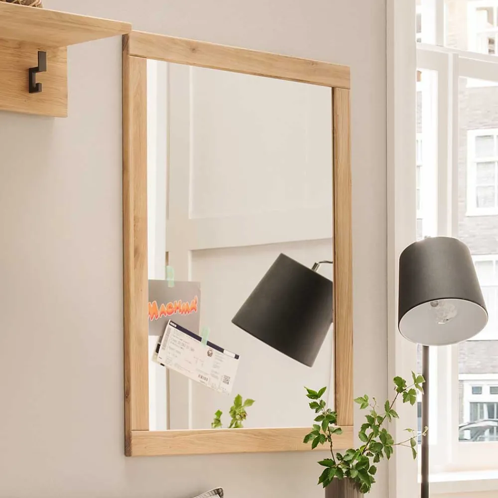 Der passende Spiegel (70x90x2 cm) vollendet das Ensemble auf elegante Weise. Der dezente Massivholzrahmen rahmt das brillante Spiegelglas mit schlichter Schönheit ein – ob quer oder hochkant aufgehängt, das flexible Format passt sich Ihrem Raumkonzept an. Der Spiegel wird vormontiert geliefert und ist sofort einsatzbereit – für den letzten Check, bevor Sie das Haus verlassen.