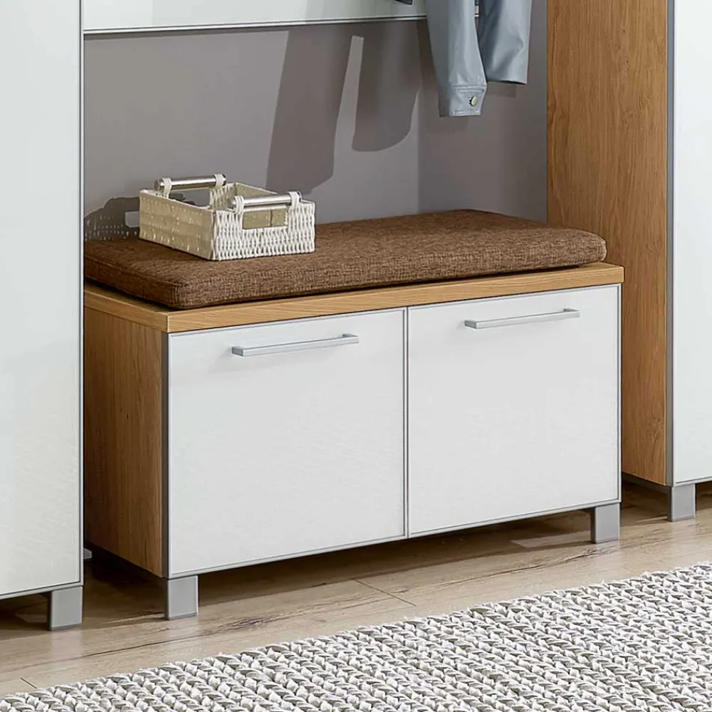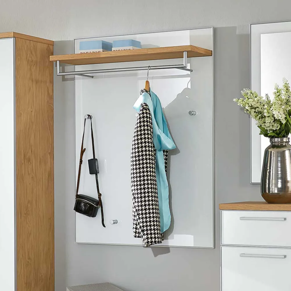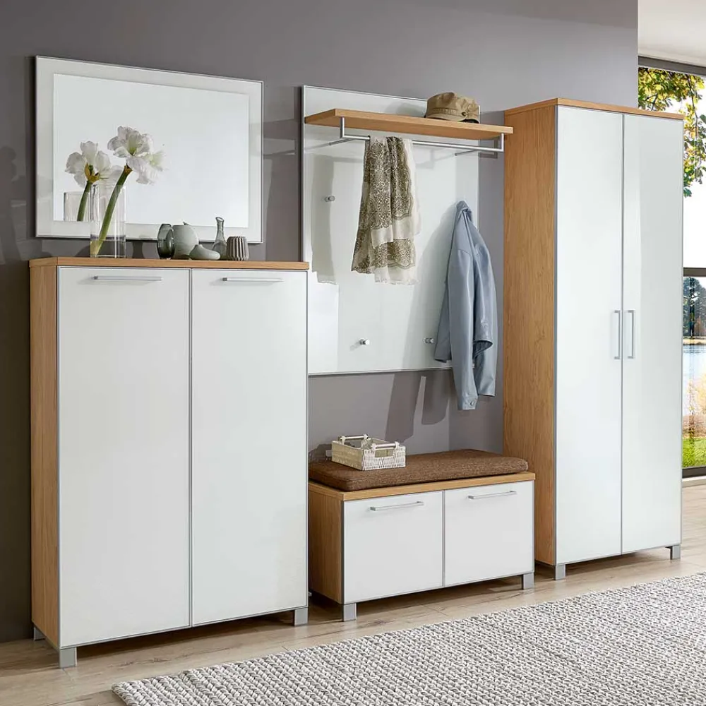 - Geschmachvolles Garderoben Set in Weiß und Eiche Bianco