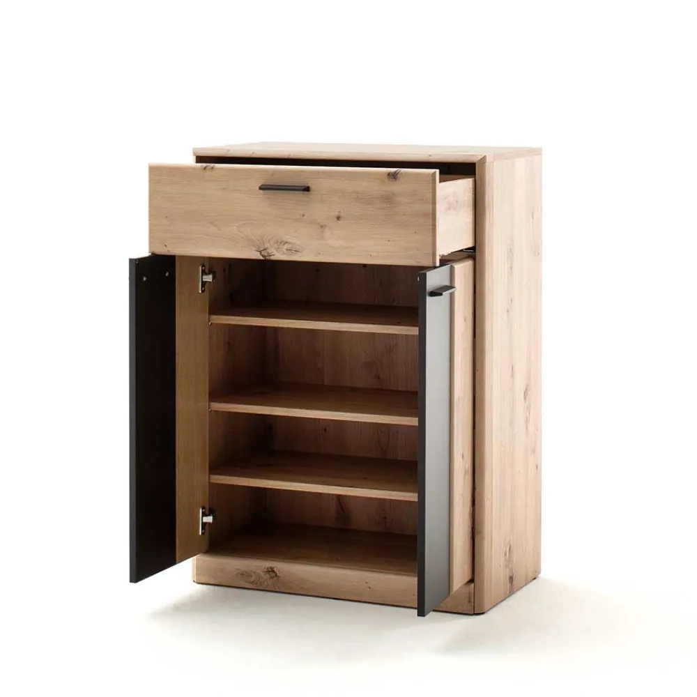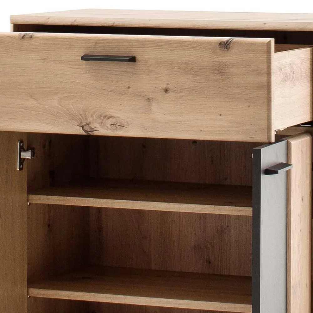 - Dekorative Kommode in Eichefarben und dunkel Grau