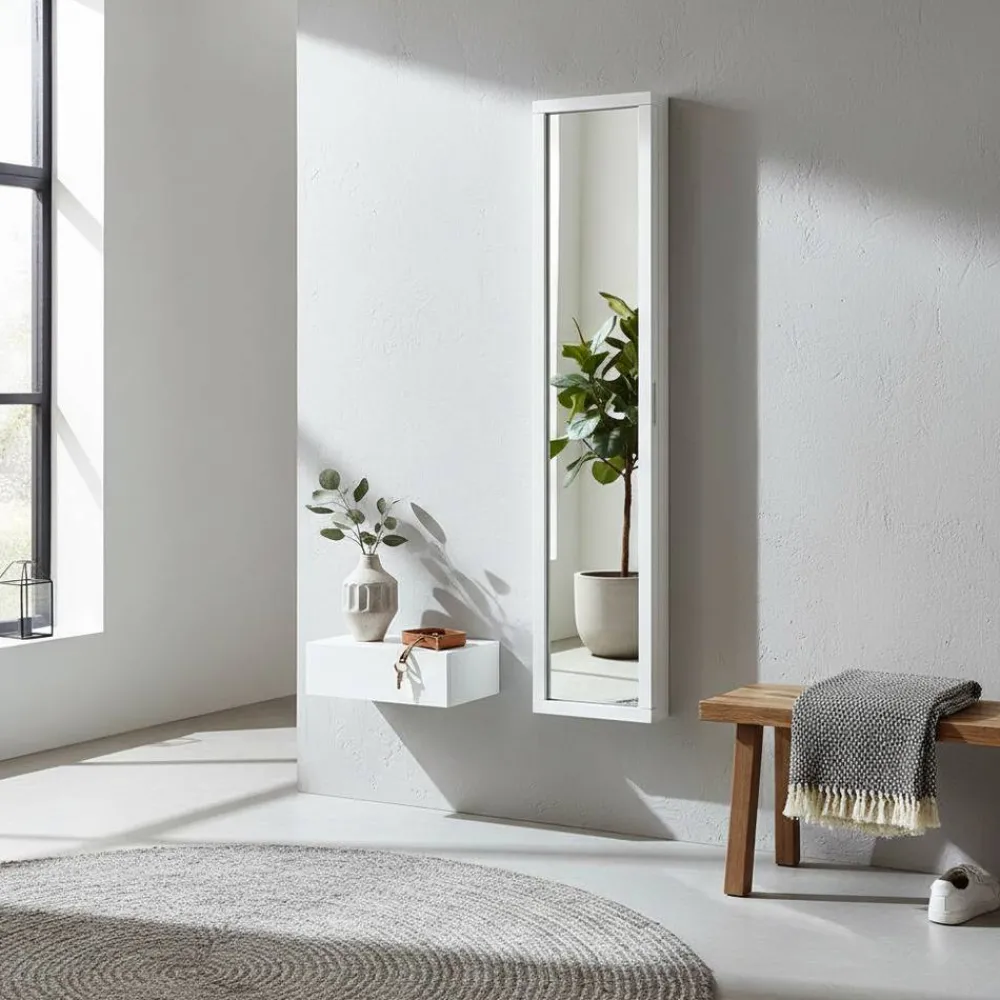 - Schlichter Schlüsselkasten mit Spiegel in Weiß
