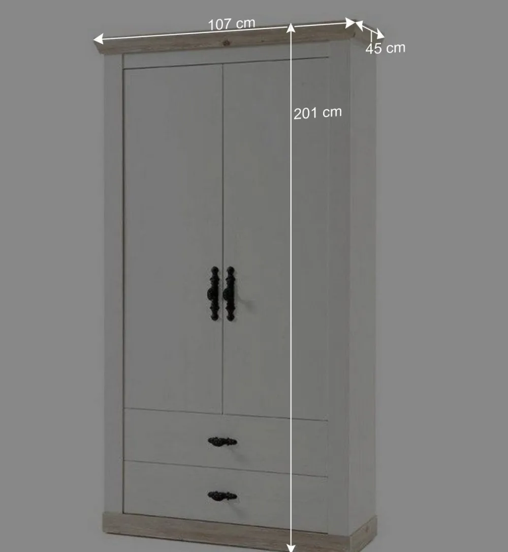 - Innen ein Konstruktionsboden mit ausziehbarer Kleiderstange und zwei Einlegeböden