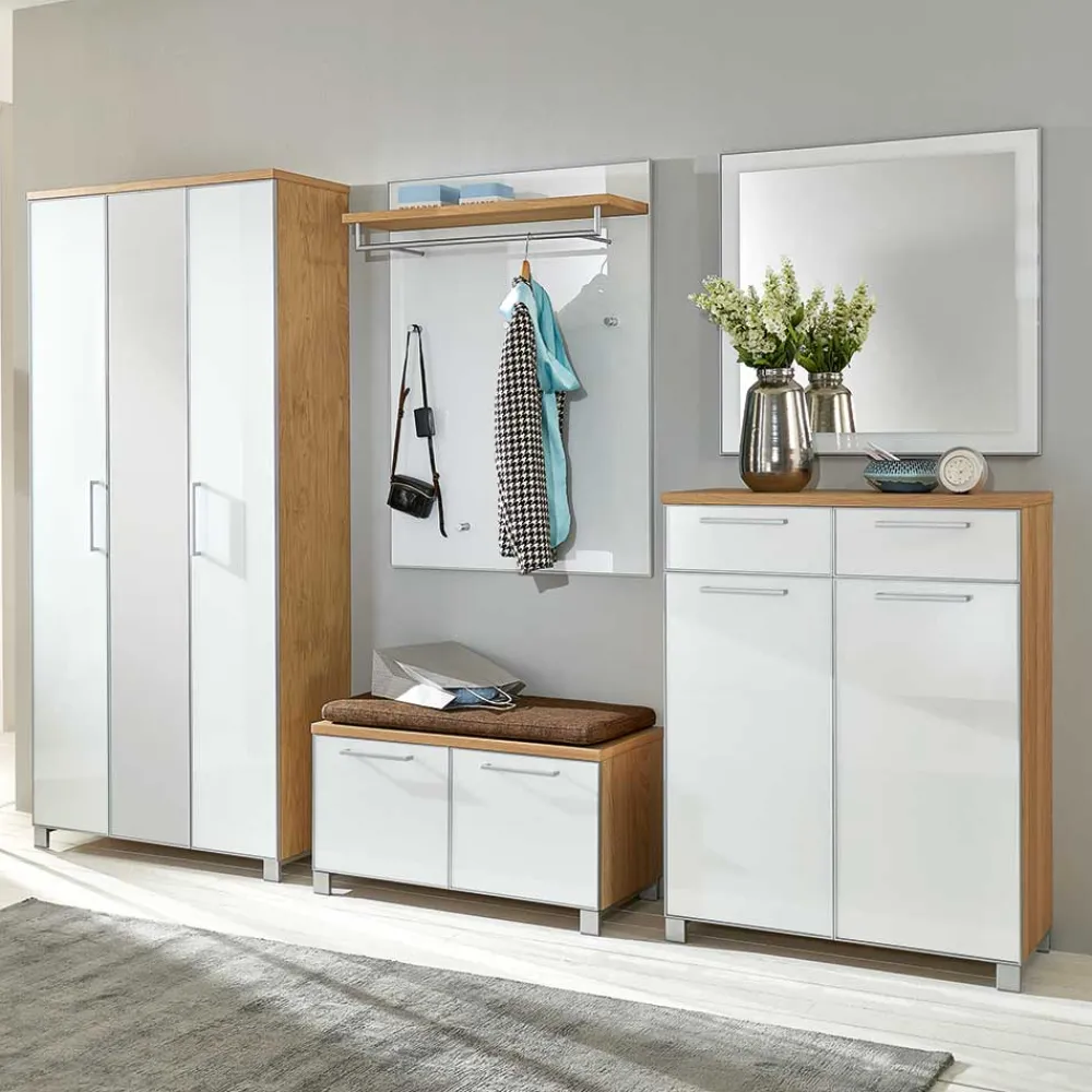 - Attraktives Garderoben Set in Weiß und Eiche Bianco