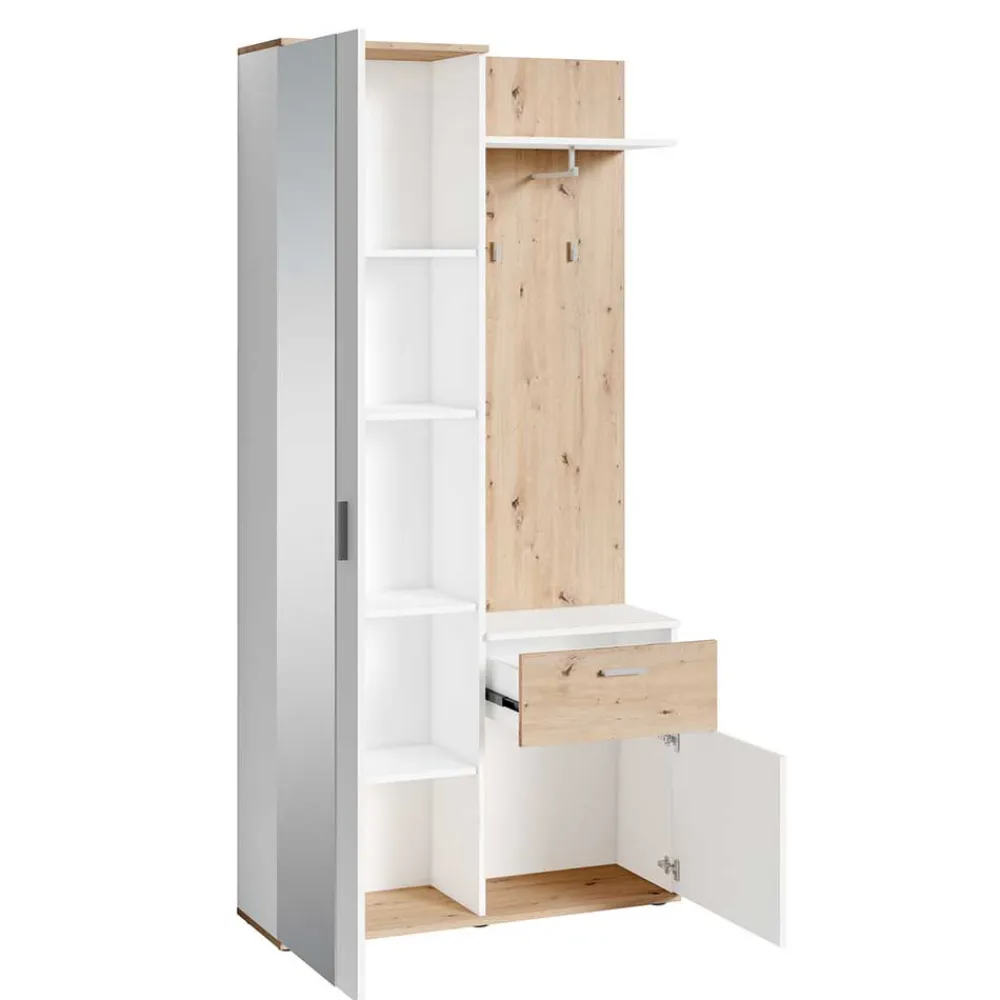 - Übersichtliche Kompaktgarderobe in Weiß und Wildeichefarben