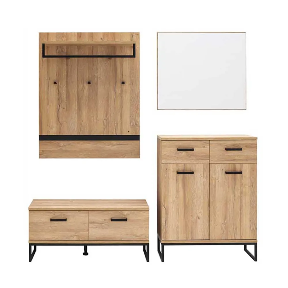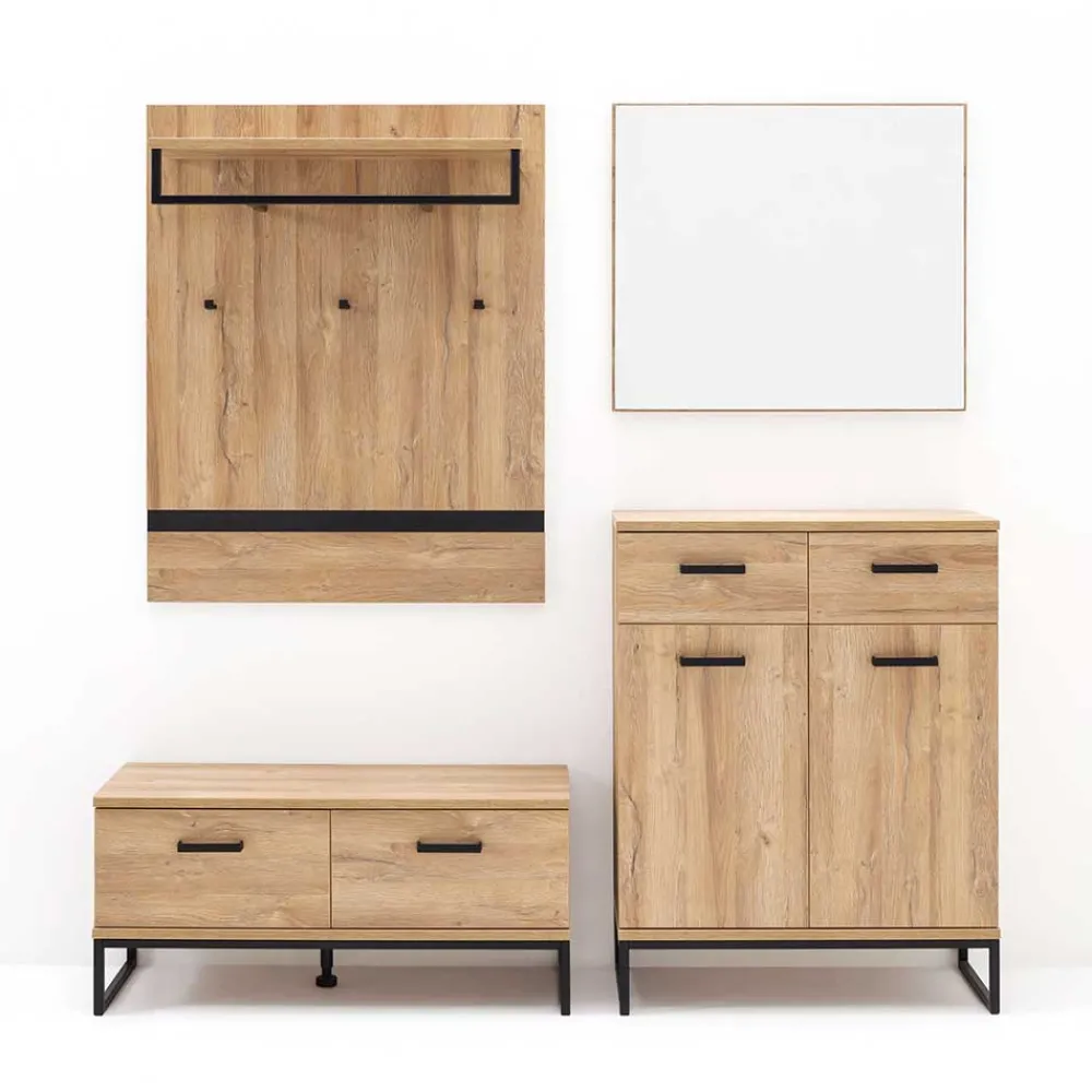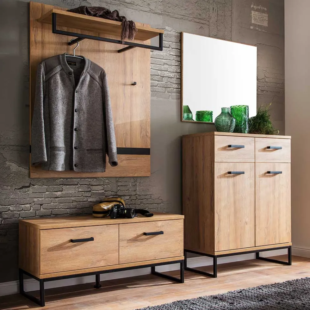 Die Garderoben-Kombination „Truvisas“ überzeugt nicht nur durch ihr ästhetisches Design, sondern auch durch ihre hochwertige Verarbeitung. Hergestellt aus robuster Spanplatte in Holzoptik Wildeiche, ist sie nicht nur visuell ansprechend, sondern auch äußerst langlebig. Die Melaminbeschichtung schützt die Oberflächen vor Kratzern und Abnutzung, wodurch Ihre Garderoben-Kombination lange Zeit wie neu aussehen wird.