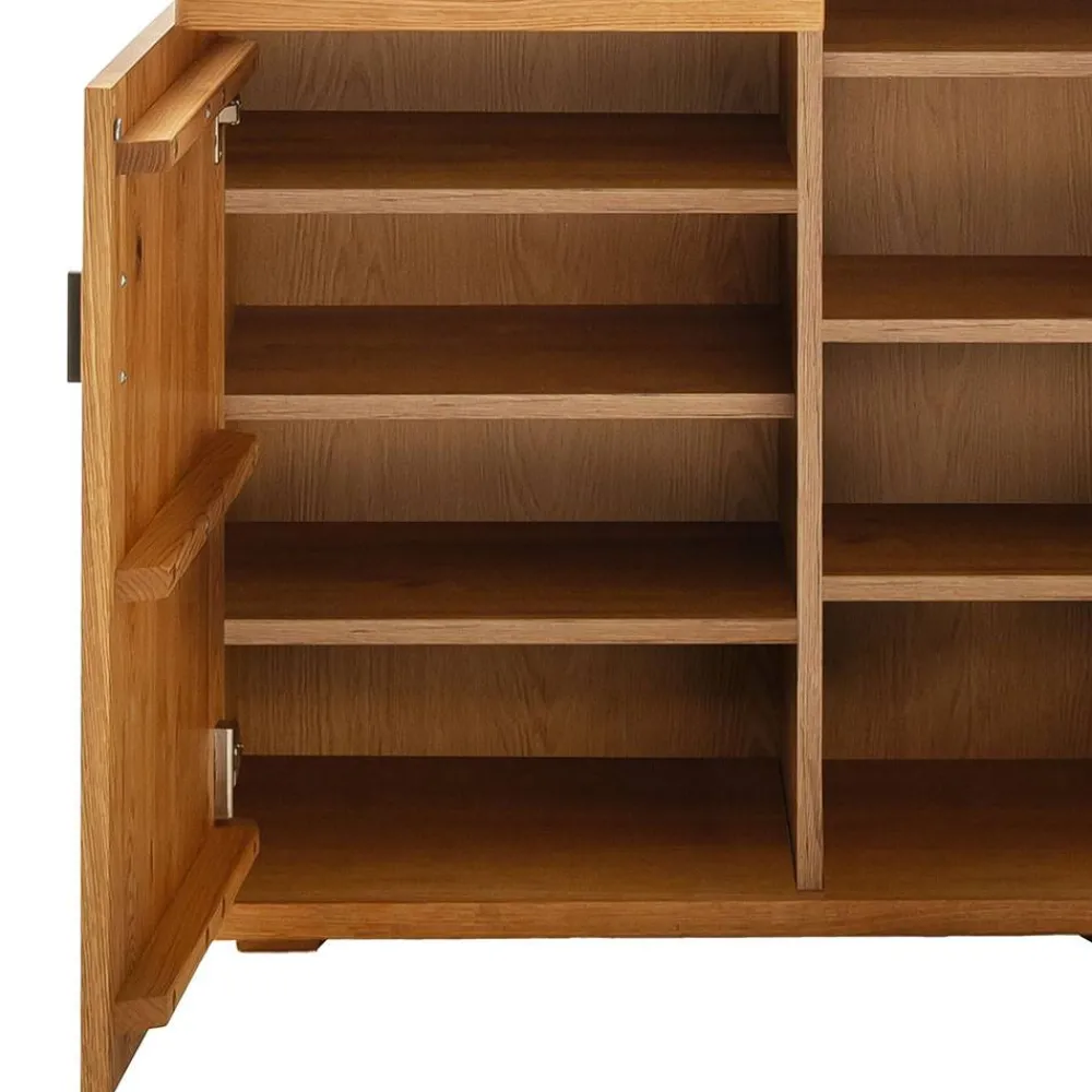 - Innen zwei Konstruktionsböden und fünf verstellbare Einlegeböden, Platz für bis zu 13 Paar Schuhe bis Größe 39