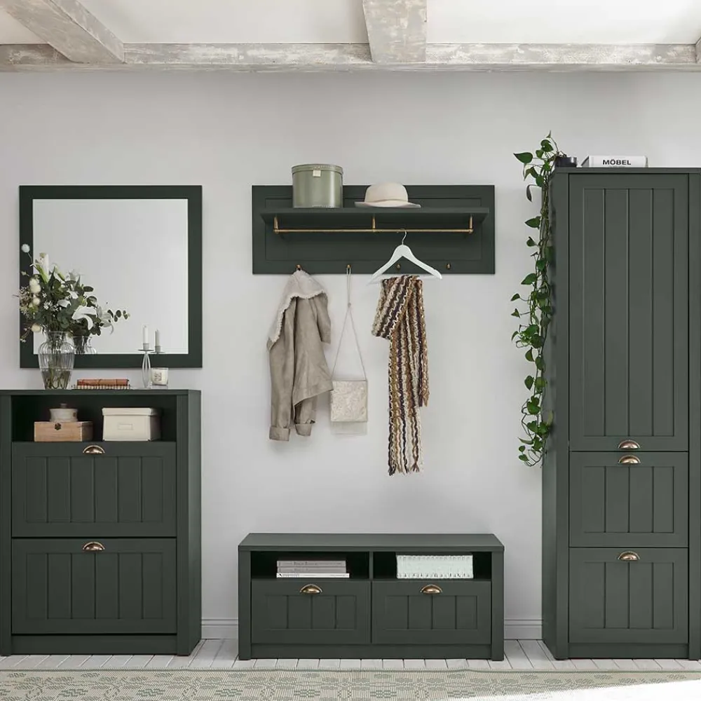 Wohnen Garderoben|Garderoben*Set Flur Einrichtung in Dunkelgrün – Niestov (fünfteilig)