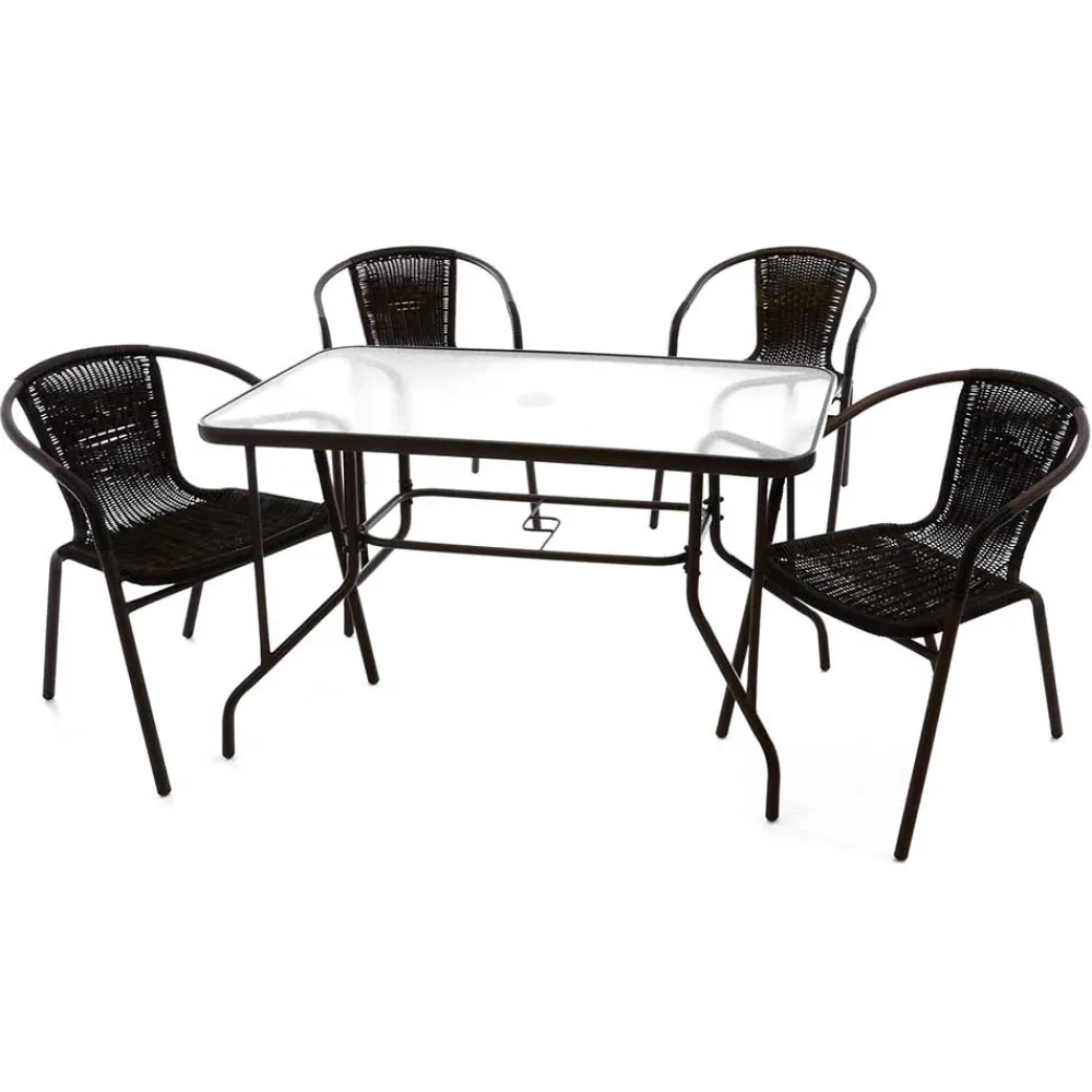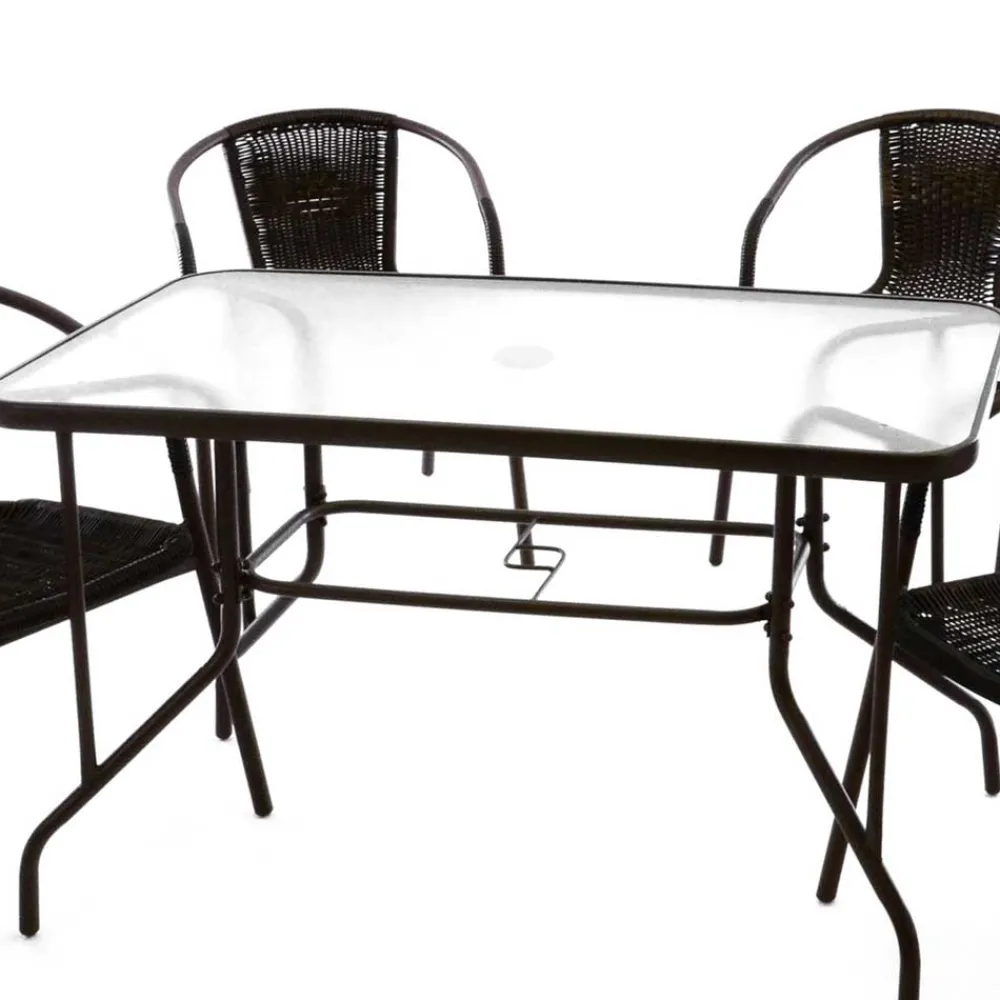 Das Set „Sylverta“ besticht durch die Kombination aus robustem Kunstrattan und stabilem Metallgestell. Die pflegeleichte Glasplatte des Tisches ist glatt, strapazierfähig und leicht zu reinigen. Die wetterfesten Oberflächen sorgen dafür, dass Sie lange Freude an diesen Möbeln haben werden. Das Kunstrattan-Geflecht bietet nicht nur eine angenehme Haptik, sondern ist auch besonders pflegeleicht.