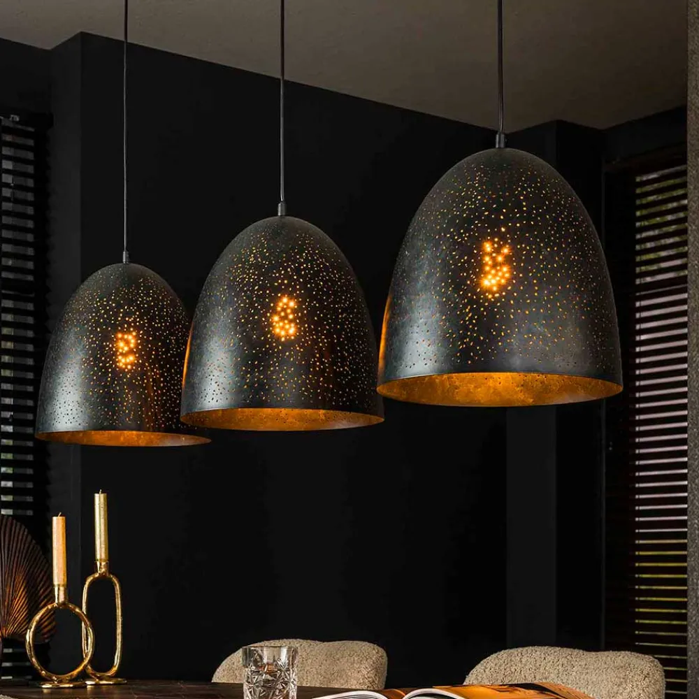 Ein besonderes Highlight bildet das kunstvoll gearbeitete Lochmuster, das im eingeschalteten Zustand ein beeindruckendes Spiel aus Licht und Schatten an Ihre Wände zaubert. Der Raum erhält dadurch eine emotionale Tiefe, die Wärme, Behaglichkeit und moderne Coolness perfekt verbindet. Diese Leuchte schafft Stimmung – und zwar jeden Abend aufs Neue.
