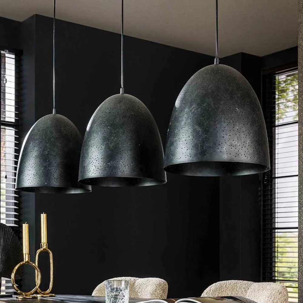 In edlem Anthrazit gehalten, wirkt die Oberfläche der Catron außergewöhnlich tief, warm und zugleich modern. Jede Leuchte entsteht in sorgfältiger Handarbeit, wodurch leichte Nuancen in Struktur und Farbauftrag entstehen, die jeden Artikel zu einem Unikat machen. Beim Berühren spürt man die feine, leicht raue Haptik des sorgsam veredelten Metalls – ein Material, das mit Stärke, Langlebigkeit und zeitlosem Stil überzeugt. Metall bietet enorme Robustheit, wirkt wertig, bleibt formstabil und verleiht der Leuchte ihre charakteristische industrielle Eleganz.