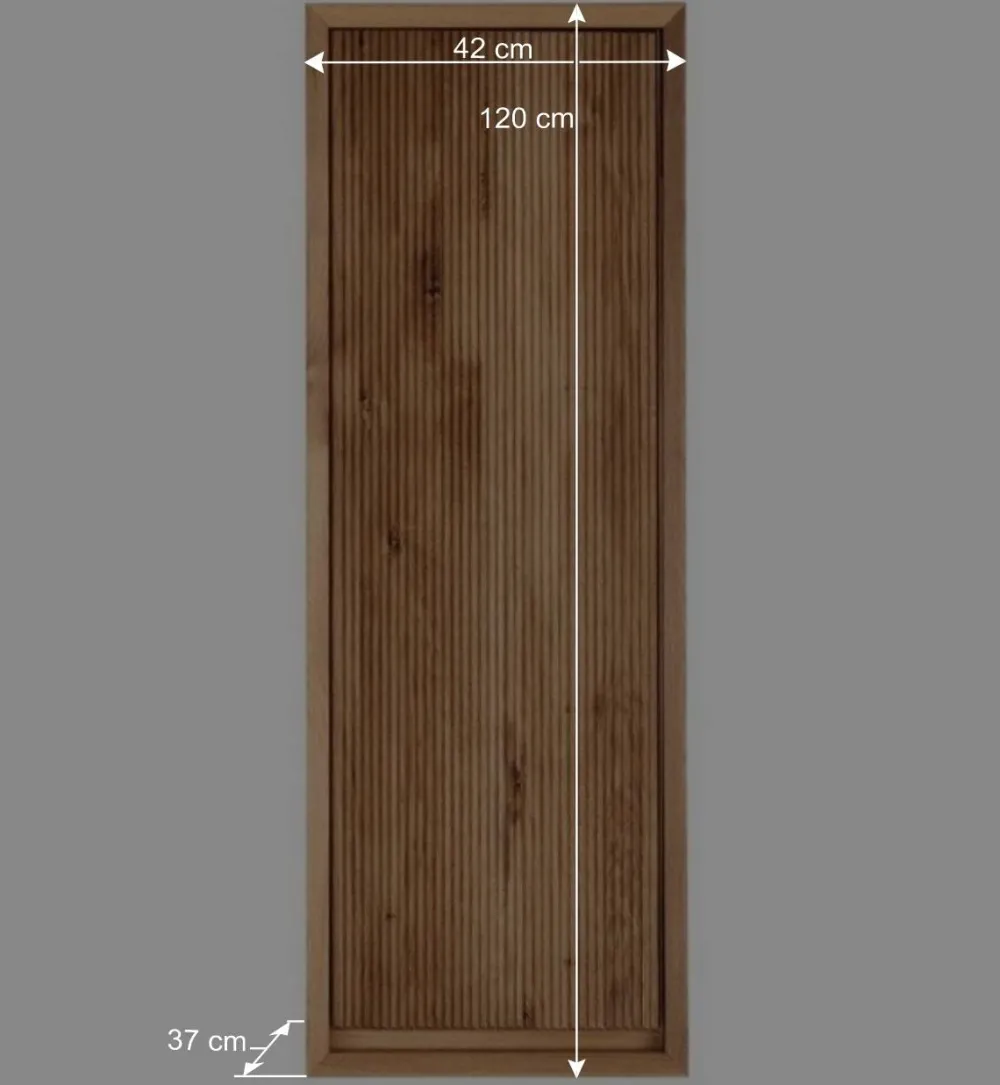 Mit einer Breite von 42 cm, einer Höhe von 120 cm und einer Tiefe von 37 cm passt der Hängeschrank ideal in unterschiedlichste Wohnsituationen. Da jedes Möbelstück aus Naturholz gefertigt ist, können Wölbungen oder kleine Risse vorkommen – ein natürlicher Charakterzug des Materials, der keinen Reklamationsgrund darstellt. Der Schrank wird fertig montiert geliefert, sodass er direkt einsatzbereit ist.