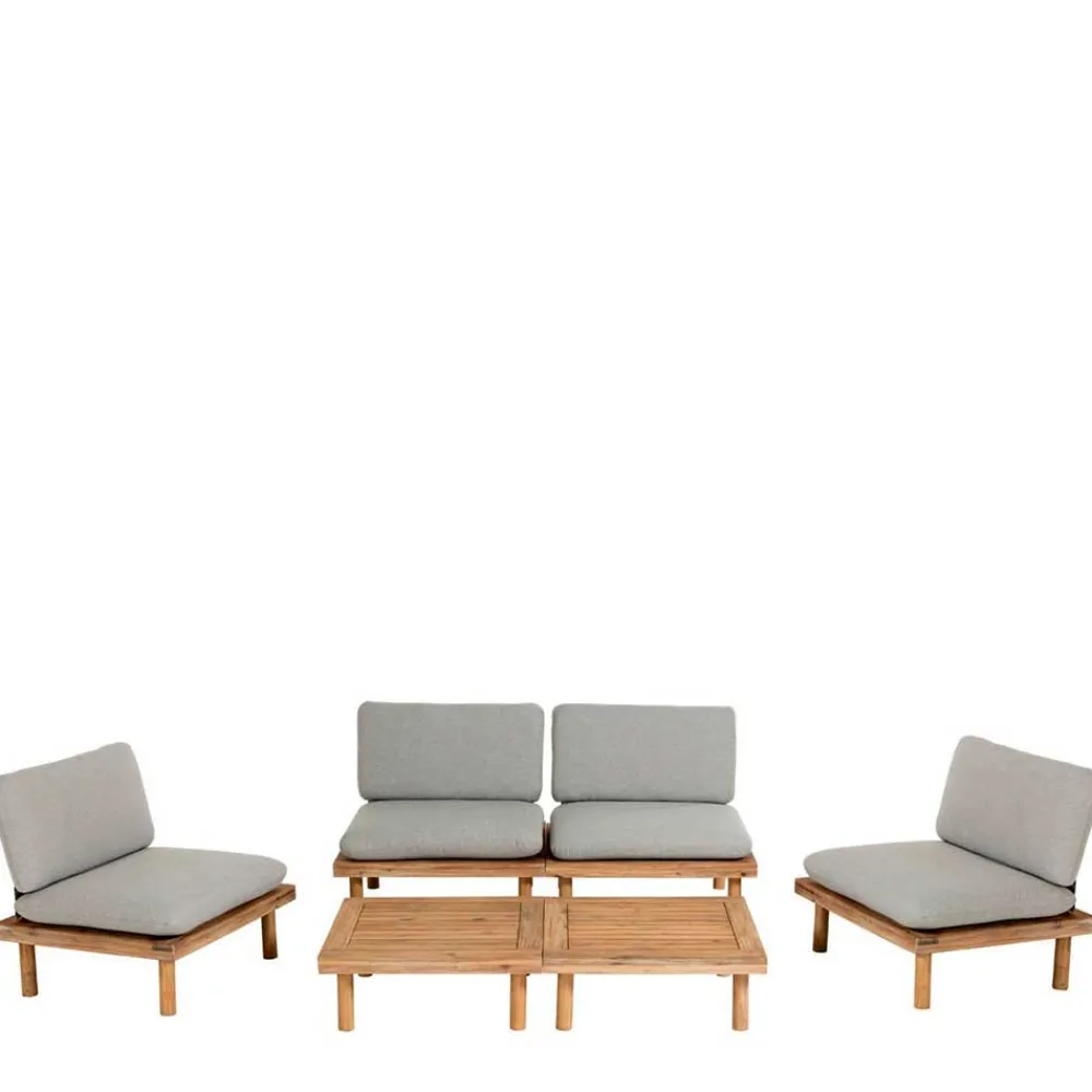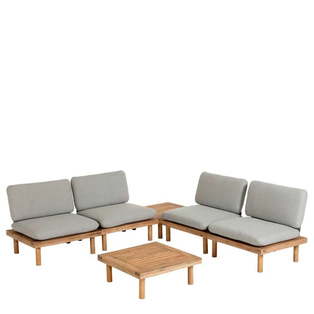 - Formvollendete Lounge Sitzgruppe in Akazie und Hellgrau