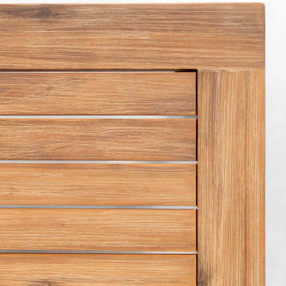 - Quadratische Tischplatte mit Abstand zwischen den Leisten, keine Staunässe