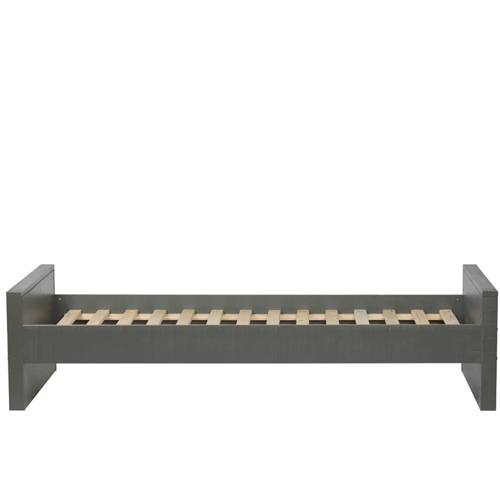 Holzbett „Firgetta“ vereint stilvolle Ästhetik mit funktionaler Qualität. Durch sein puristisches, modernes Design wird es zum Highlight in jedem Jugend- oder Gästezimmer. Die klare Linienführung und die coole Used-Optik passen perfekt in ein modernes Wohnambiente, ohne aufdringlich zu wirken. Dieses Bett überzeugt durch eine graue, lackierte Oberfläche aus massivem Kiefernholz – ein wahres Statement für minimalistischen Stil und hochwertige Handwerkskunst.