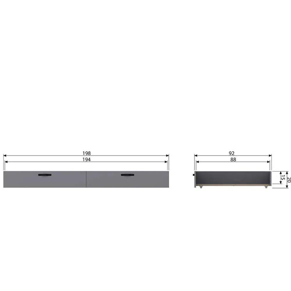 Für noch mehr Funktionalität kannst du das Holzbett „Firgetta“ mit einem optionalen Bettkasten auf Rollen bestellen. Der praktische Bettkasten bietet viel Stauraum für Bettwäsche, Decken oder andere Gegenstände, die du schnell und einfach verstauen möchtest. Mit den Maßen von 198 cm Breite, 20 cm Höhe und 92 cm Tiefe passt er perfekt unter das Bett und fügt sich nahtlos in das Design ein.