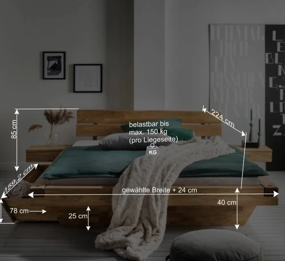 In diesem Wohnen.de Angebot enthalten sind auch zwei Nachtkonsolen, welche sich einfach am Bettrahmen anbringen lassen. Diese haben jeweils eine Größe von 45x15x33 cm und sind mit einer Schublade (Innenmaß: 35,8×8,2×26 cm) ausgestattet.
