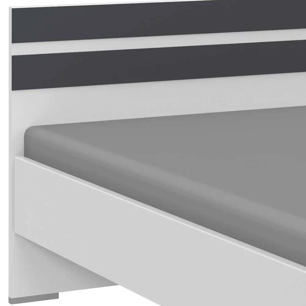 Mit dem Bett „Tamba“ ziehen Eleganz und moderne Schlichtheit in Ihr Schlafzimmer ein. Die Kombination aus Weiß und Dunkelgrau erzeugt einen stilvollen Kontrast, der jedem Raum eine edle Note verleiht. Die klare Linienführung und das schnörkellose Design machen dieses Bett zu einem zeitlosen Möbelstück, das sich perfekt in unterschiedliche Einrichtungsstile einfügt. Das Kopfteil beeindruckt mit einer Höhe von 71 cm und den dunkelgrauen Absetzungen, die einen besonderen Akzent setzen. Das dezente Fußteil mit 43 cm Höhe sorgt für eine harmonische Proportion und rundet das Gesamtbild geschmackvoll ab.
