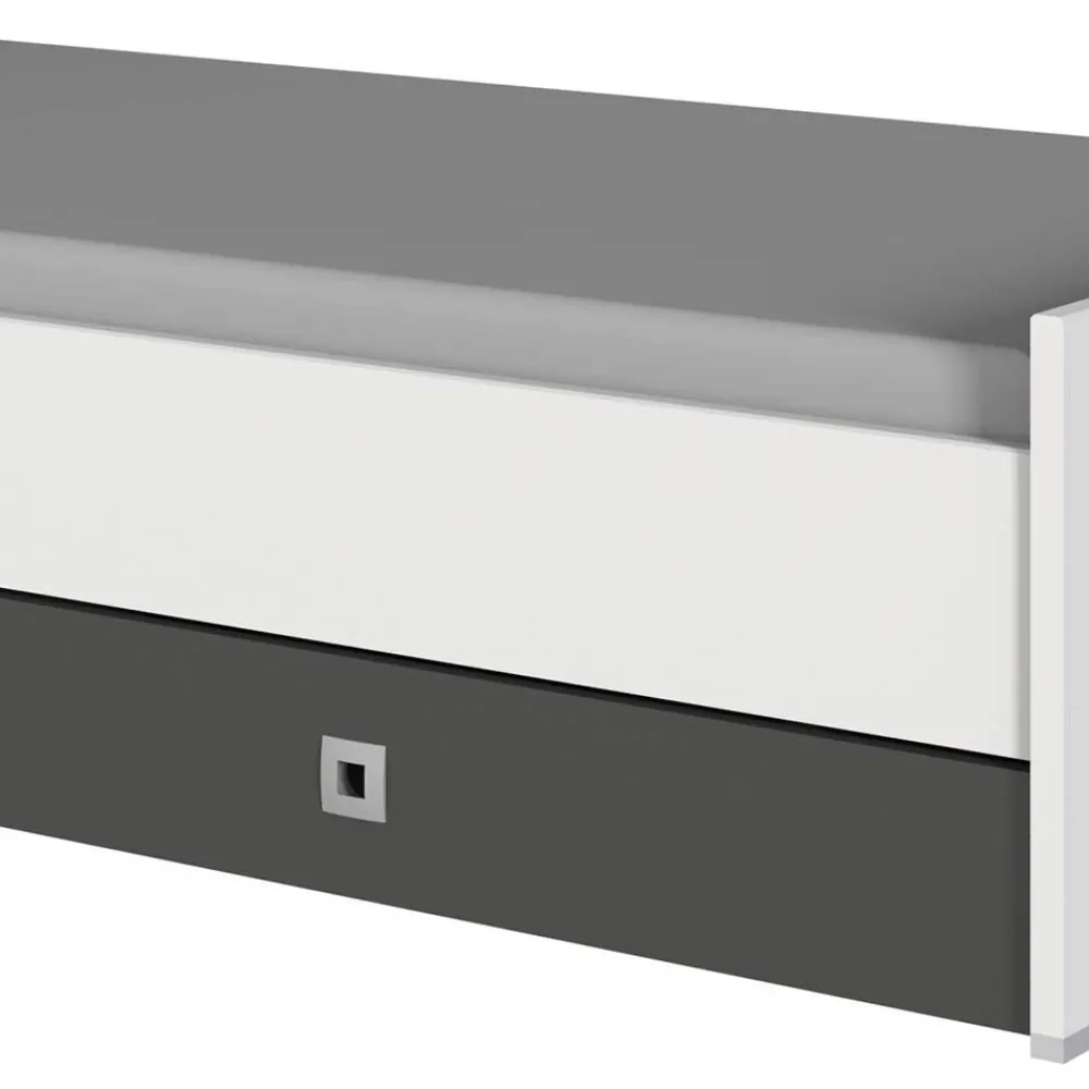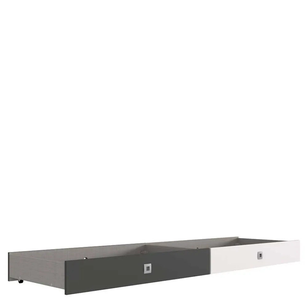 Qualität und Langlebigkeit stehen bei „Tamba“ im Vordergrund. Hergestellt aus hochwertiger Spanplatte, zeichnet sich das Bett durch seine stabile Konstruktion aus. Spanplatte ist nicht nur ein kostengünstiges, sondern auch ein umweltfreundliches Material, das durch seine Robustheit und Haltbarkeit überzeugt. Die Oberflächen sind mit einer pflegeleichten Folie in Weiß und Dunkelgrau beschichtet, die das Bett nicht nur vor Kratzern schützt, sondern auch für eine einfache Reinigung sorgt. Ein feuchtes Tuch genügt, um das Bett strahlend sauber zu halten – ideal für einen stressfreien Alltag.