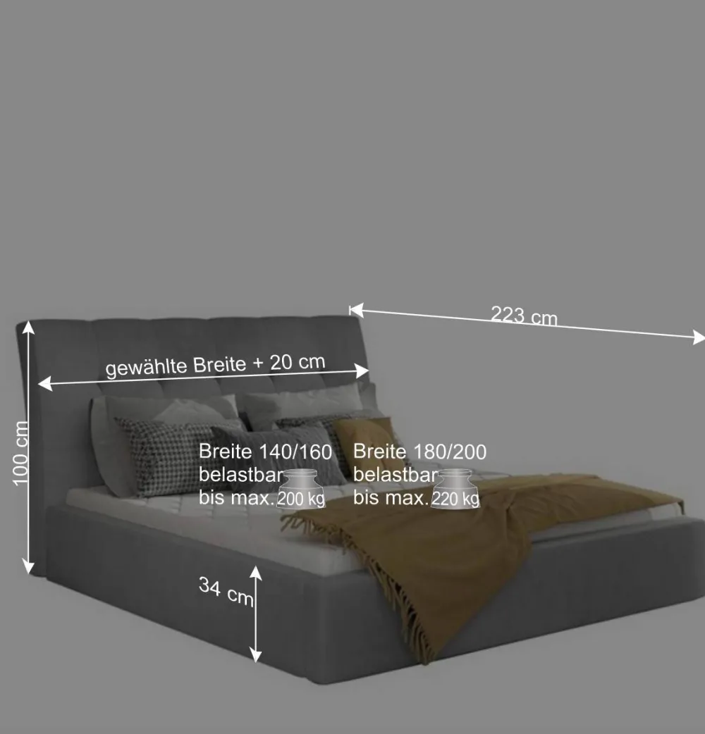 Das leicht nach hinten geneigte Kopfteil ist mit dekorativen Steppungen versehen – ein echter Eyecatcher! Die dezente Punktsteppung verleiht dem hohen Kopfteil (100 cm) eine stilvolle Struktur und lädt dazu ein, sich entspannt anzulehnen, sei es beim Lesen, Fernsehen oder gemütlichen Frühstücken im Bett.