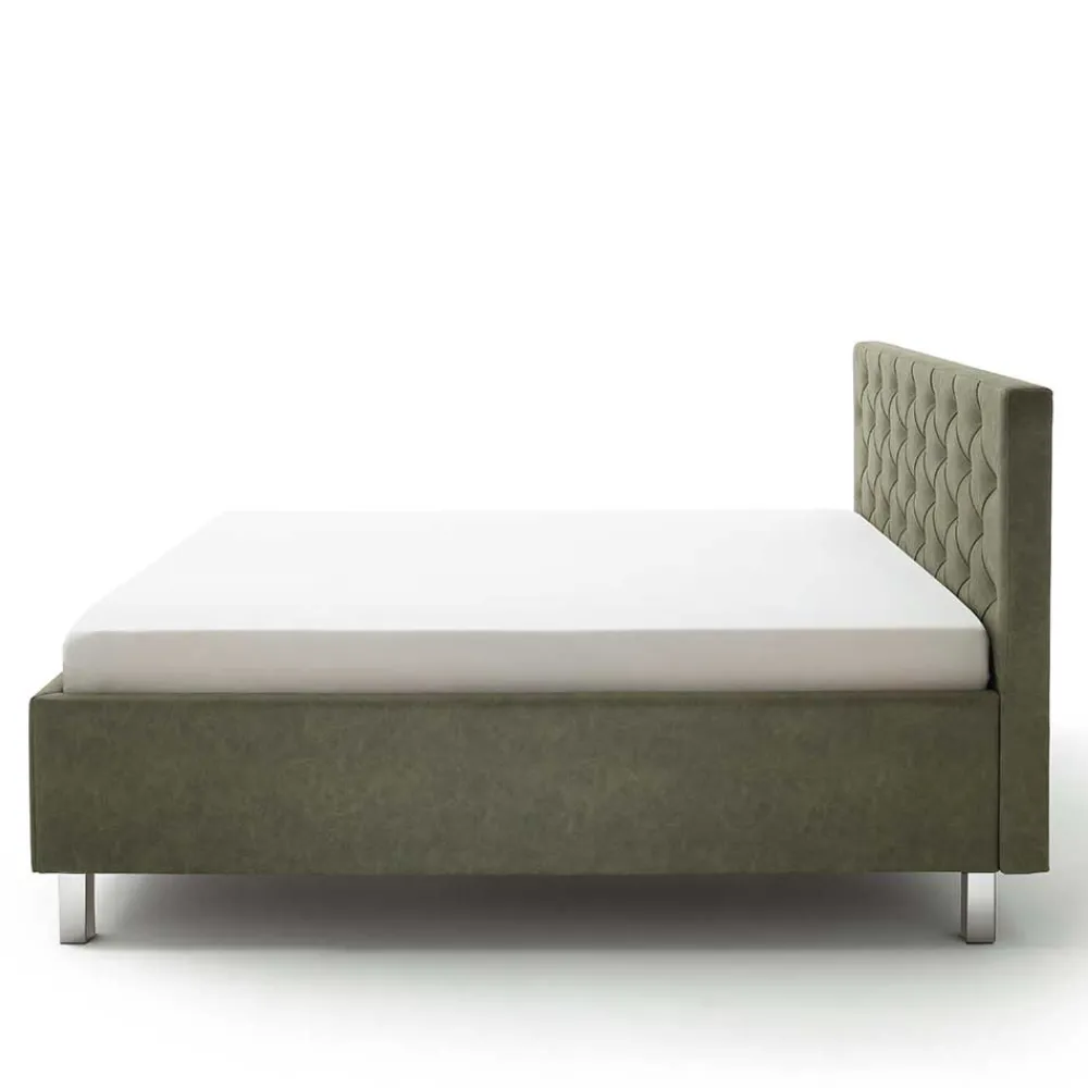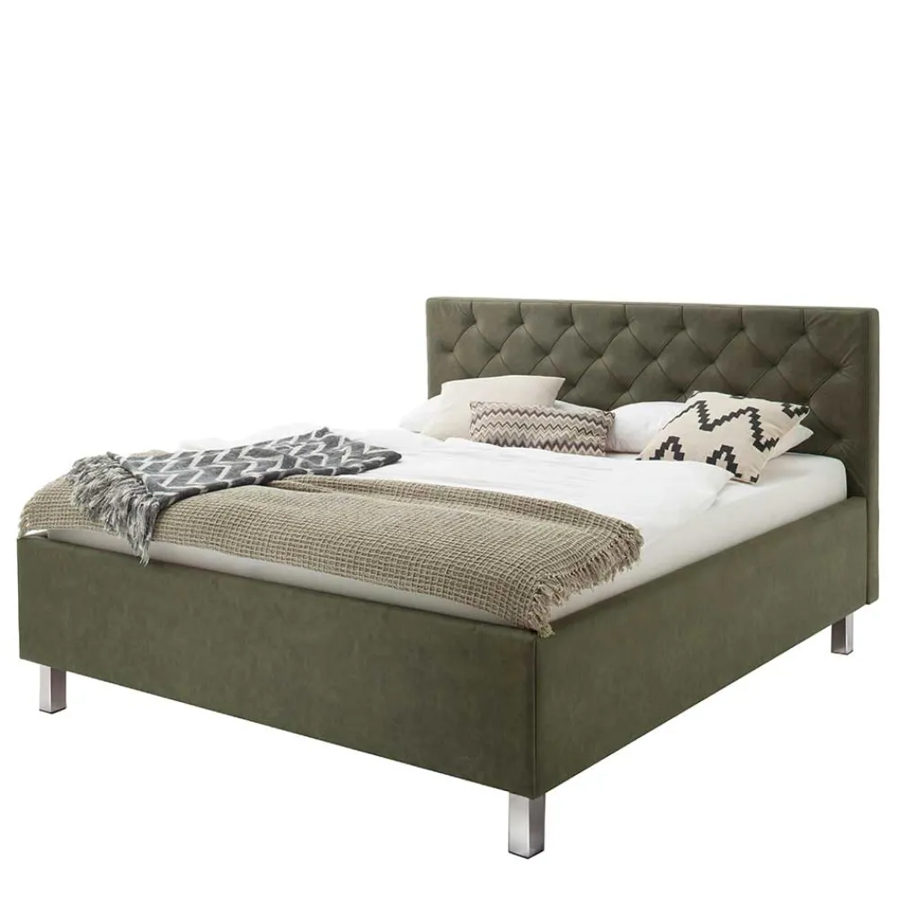 - Klasse Polsterbett in Olivgrün und Chromfarben