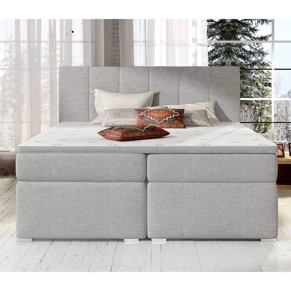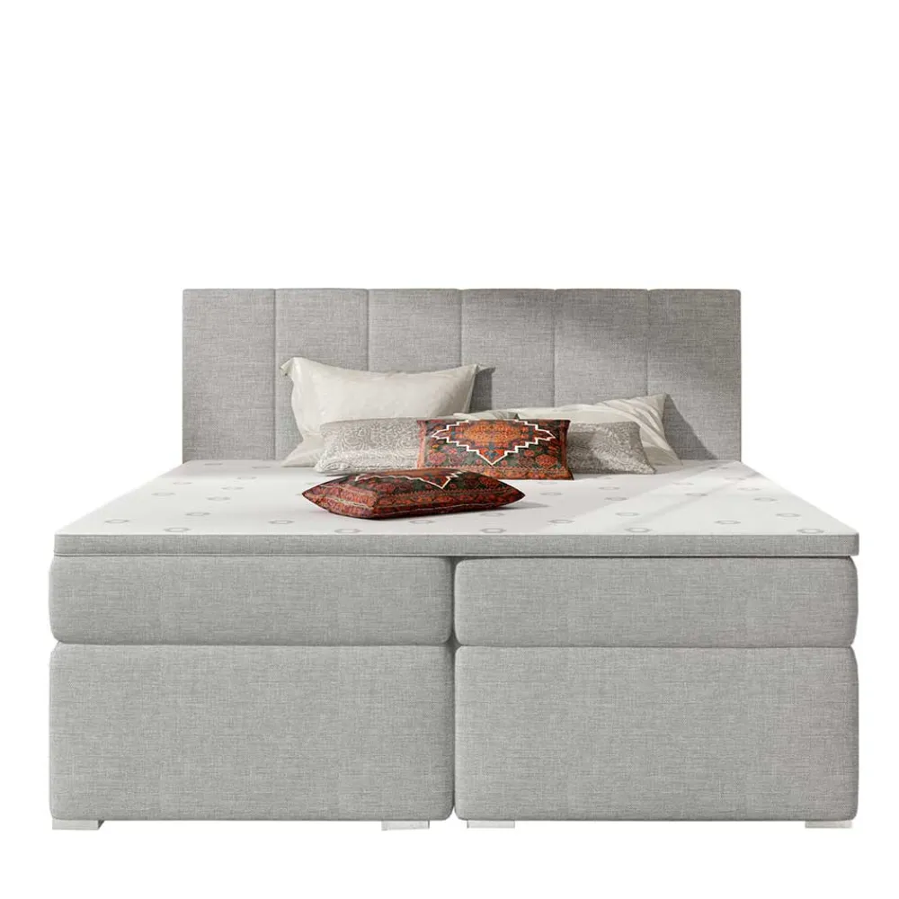 Mit dem Boxbett „Cibaota“ holen Sie sich zeitlose Eleganz und freundliche Ausstrahlung in Ihr Schlafzimmer. Der strapazierfähige Webstoff in Hellgrau verleiht dem Bett einen modernen Look, der sich leicht in unterschiedliche Einrichtungsstile integrieren lässt. Das geradlinige Kopfteil mit dekorativen vertikalen Steppungen sorgt für ein harmonisches Gesamtbild.