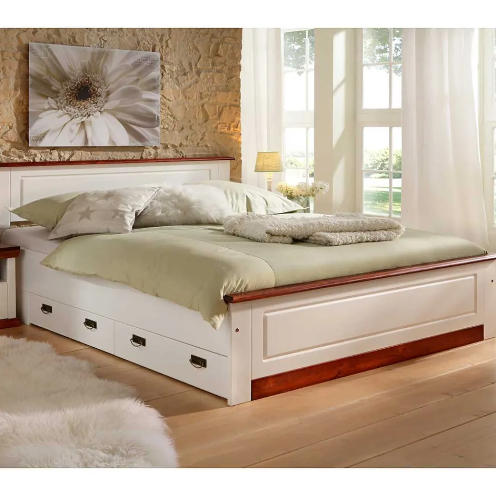Wohnen Jugendbetten*Landhaus Holzbett in Weiß & Kirschbaum - Vendirai