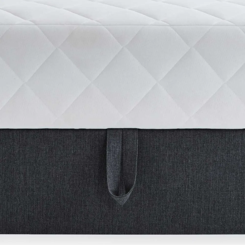 Ein Außenbezug aus anthrazitfarbenem Strukturstoff (100 % Polypropylen) verleiht dem Bett eine zeitlose Ästhetik und sorgt für eine angenehme Haptik.
