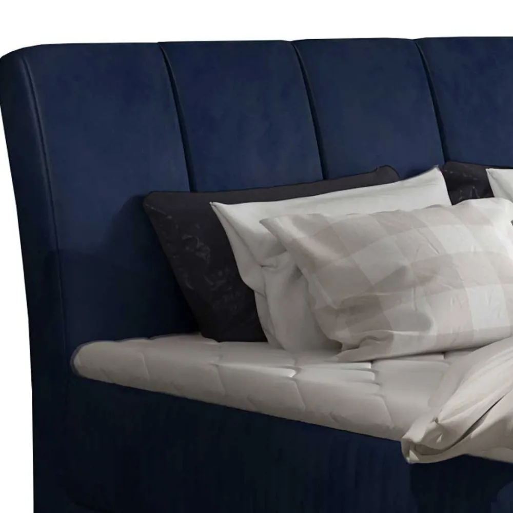 Das Samtbett „Dessa“ zieht mit seiner kräftigen Farbgebung in Dunkelblau und dem luxuriösen Samtbezug alle Blicke auf sich. Dieses edle Möbelstück kombiniert exquisites Design mit erstklassigem Schlafkomfort und wird so zu einem stilvollen Mittelpunkt in Ihrem Schlafzimmer.