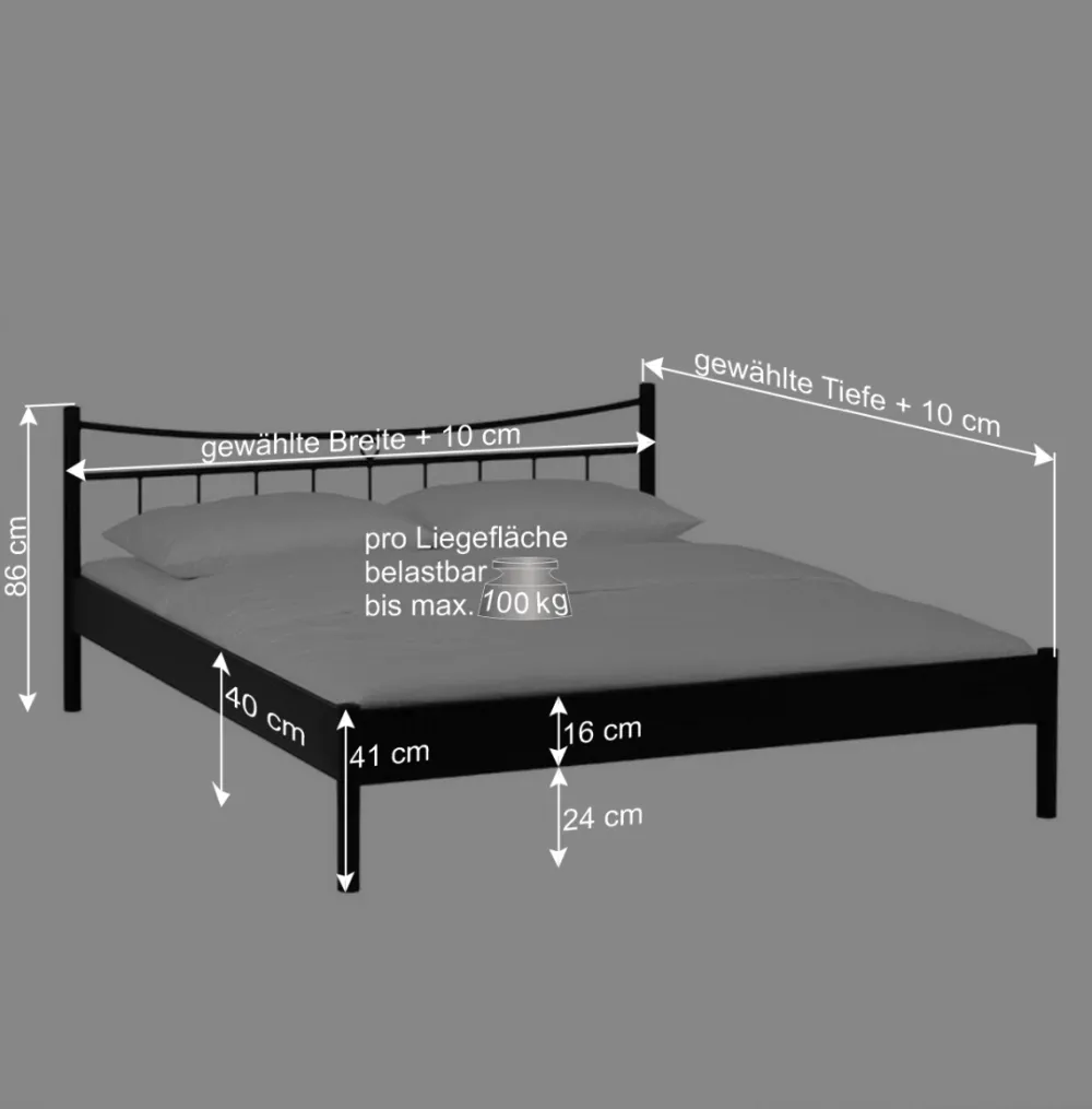 - Max. Belastbarkeit pro Liegefläche: 110 kg