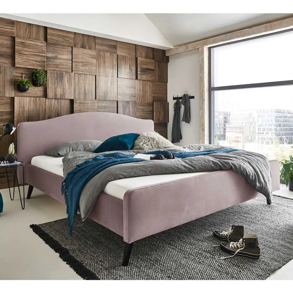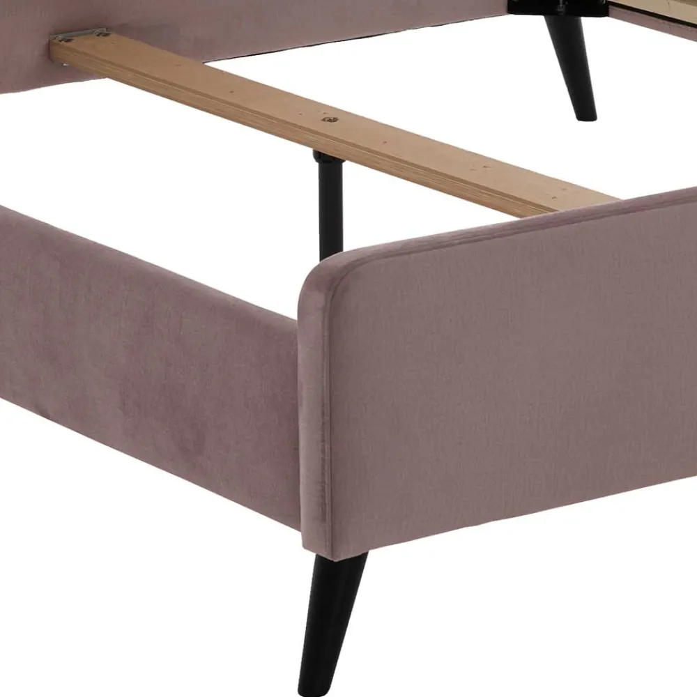 Das schräg konstruierte Vierfußgestell aus hochwertigem Massivholz in Schwarz sorgt für den perfekten Stand und fügt sich harmonisch in das Gesamtbild des Bettes ein. Die Kombination aus Altrosa Samtvelours und schwarzem Holzgestell verleiht Ihrem Schlafzimmer eine moderne, edle Atmosphäre.