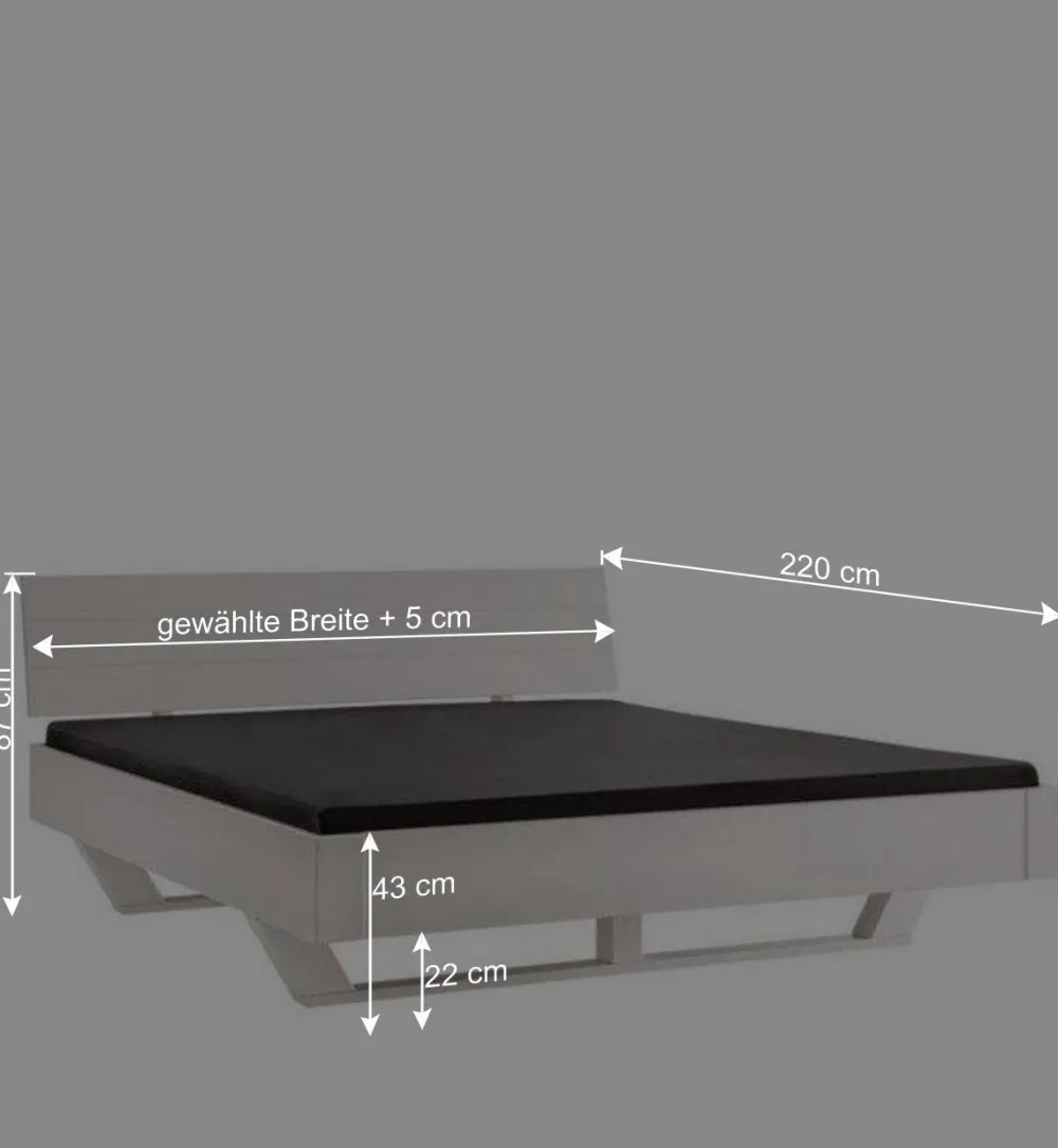 Die durchdachte Konstruktion des Bettes wird durch die zwei quer unter dem Bettrahmen befestigten Holzkufen abgerundet. Diese Kufen verschmelzen optisch mit dem Bettrahmen und sorgen gleichzeitig für einen sicheren und stabilen Stand. Mit einer Einlegetiefe von 18 cm für den Lattenrost und einer Einstiegshöhe von 43 cm bietet das Bett „Odrato“ optimalen Komfort. Die Bodenfreiheit von 22 cm verleiht dem Bett eine schwebende Optik und erleichtert die Reinigung des Schlafzimmers.
