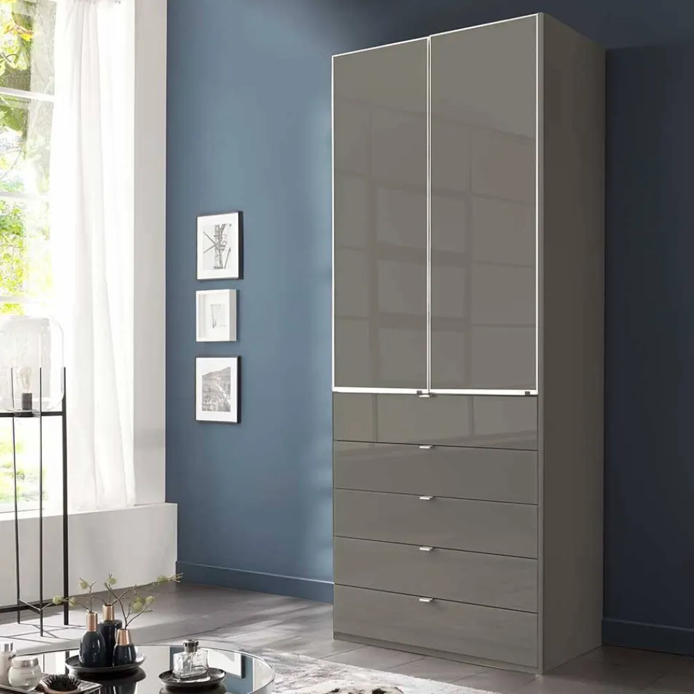 Wohnen Jugendzimmerschränke*Brauner Schlafzimmerschrank mit Glasfront – Madita