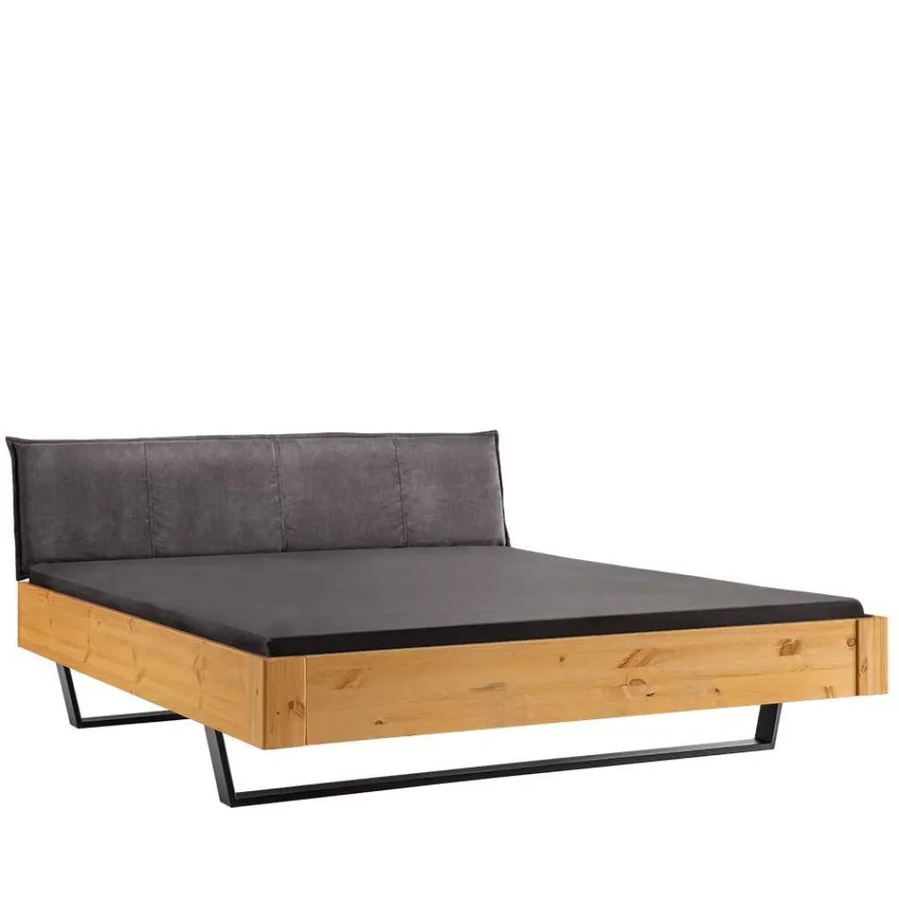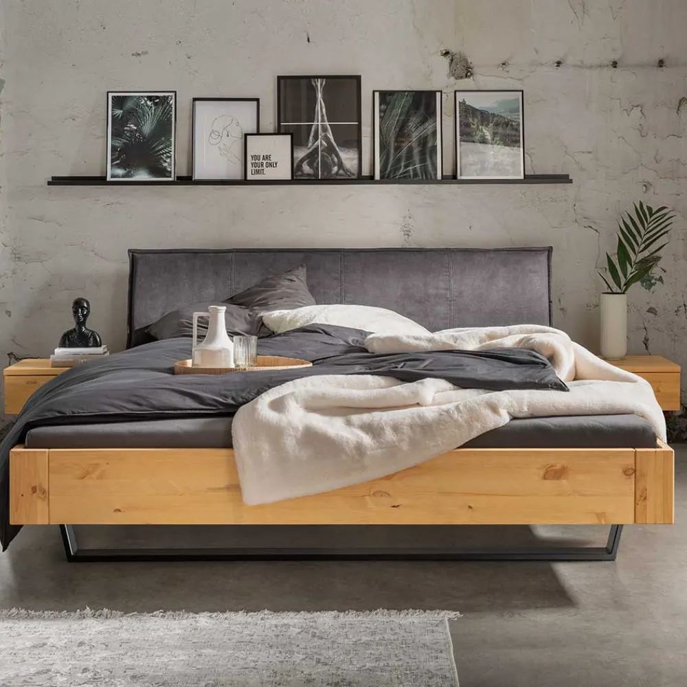 Wohnen Kiefernholz-Bett gelaugt mit Stoff-Kopfteil – Phiano